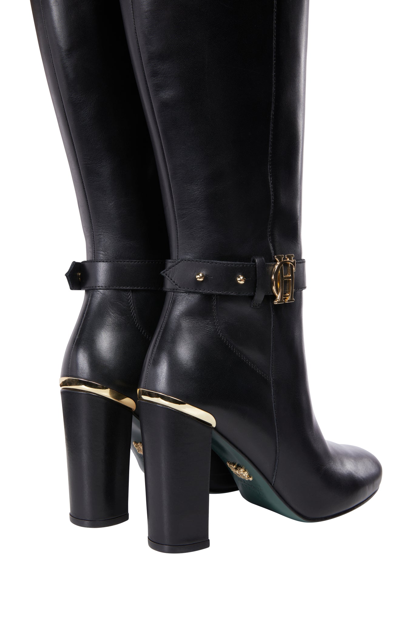 Elevated for the season, The timeless Marlborough Knee Boot is now crafted from premium smooth leather for a sleek and polished look. Featuring iconic gold trims, these boots exude elegance and luxury. Fully lined in leather with a classic green lacquered sole, they offer both style and comfort, making them an essential addition to any wardrobe.