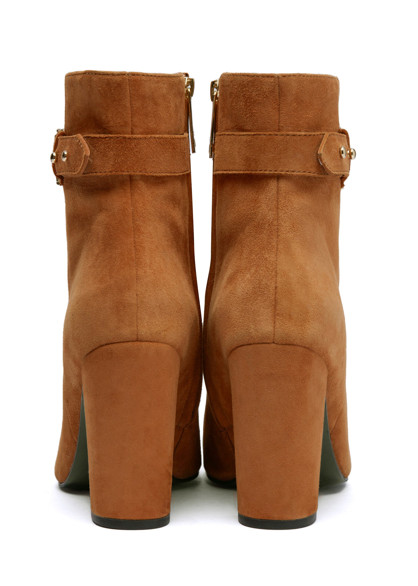 - Elegant ankle length suede high heeled boot