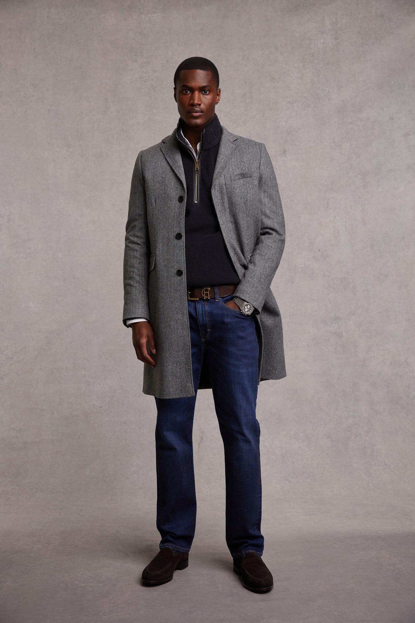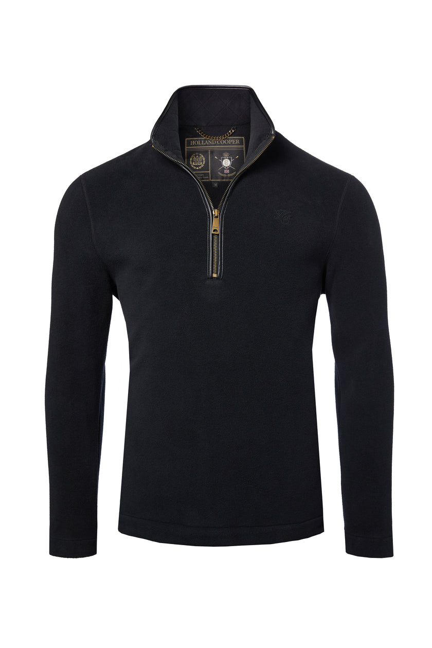 Expertly crafted from technical polar fleece fabric with a half centre zip, this piece has been designed to layer and ensure style on the coldest of days. Detailed with faux leather piping and subtle HC embroidery to the chest, the hidden seamed pockets ensure a smooth and clean fit when worn. Elevated with our iconic antique brass fastenings and metal hardware to finish the look. Layer under our Cheltenham Coat for a classic and British look.