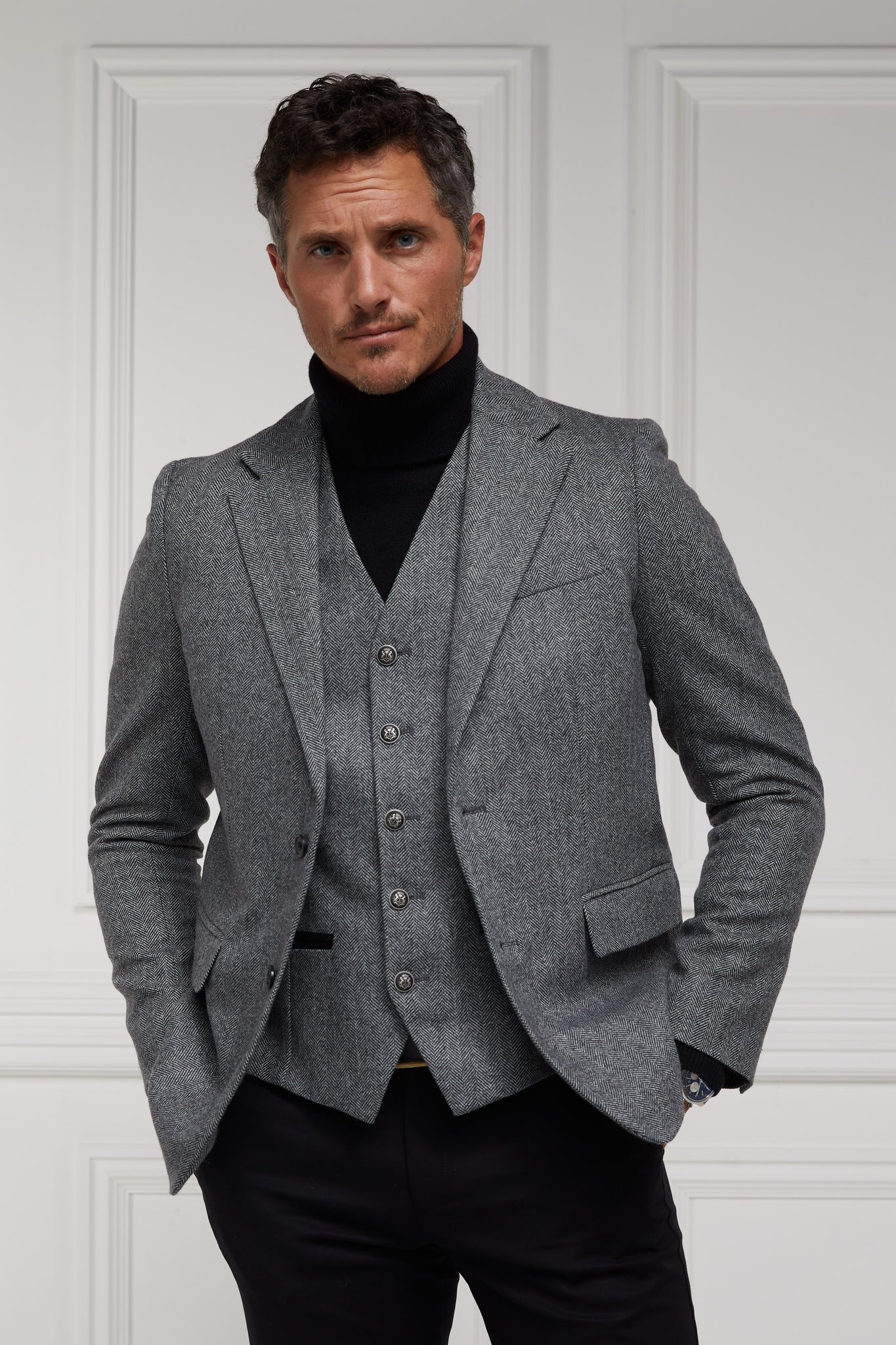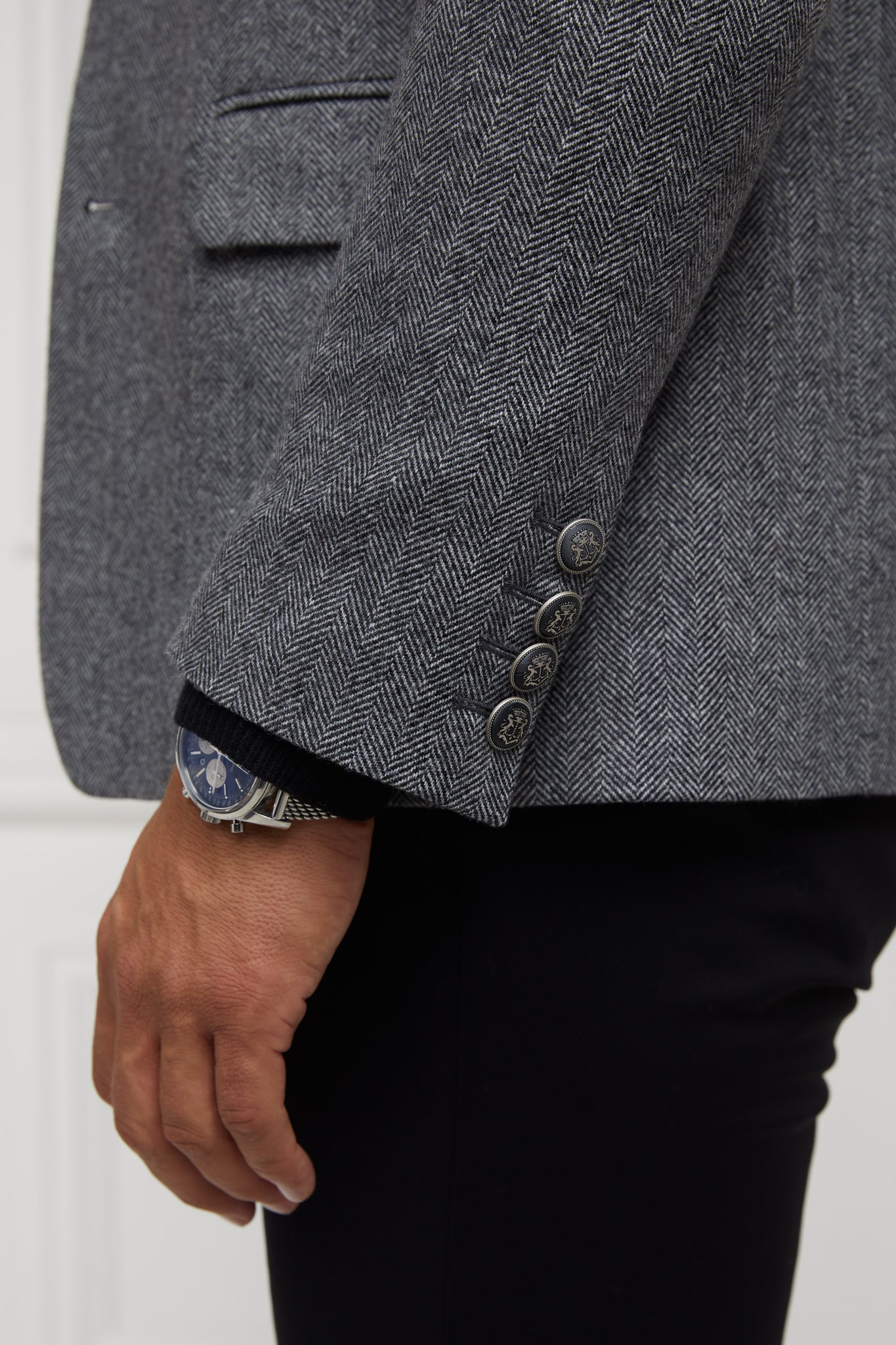Designed with a single-breasted silhouette and lightly padded shoulder construction, this Single Breasted Blazer showcases a preppy style with a modern elevation. Drawing inspiration from our British heritage, each blazer has been carefully crafted in our UK mills from the finest of Scottish tweeds. With classic notch lapels and neat horn buttons to fasten, the contrasting under collar makes for a contemporary twist. Elegantly lined with a luxurious satin twill with double welt pocket detailing. Finished with traditional Holland Cooper detailing, braided lapels and practical chain hanger loop.