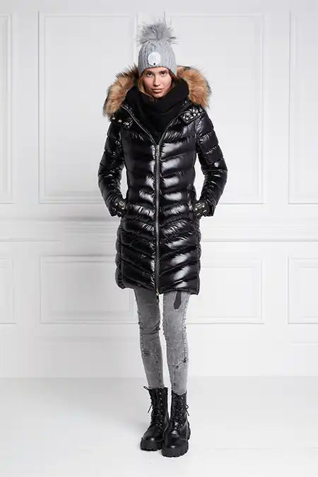 Embrace colder climes with the Molina padded coat. Its quilted design and insulating eco-friendly fill locks in warmth, perfect for braving the elements. Complete with faux fur trimmed hood and full-length gold zip, it is a stylish, yet practical, alternative to your typical outerwear.