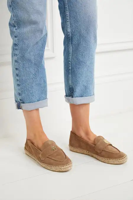 Beautifully made in Spain, these loafer espadrilles have been designed with traditional penny slot detailing. Created from a soft suede and set on jute soles, they have been detailed with our iconic gold monogram. Both stylish and comfortable, the classic shape transitions easily from summer into autumn.