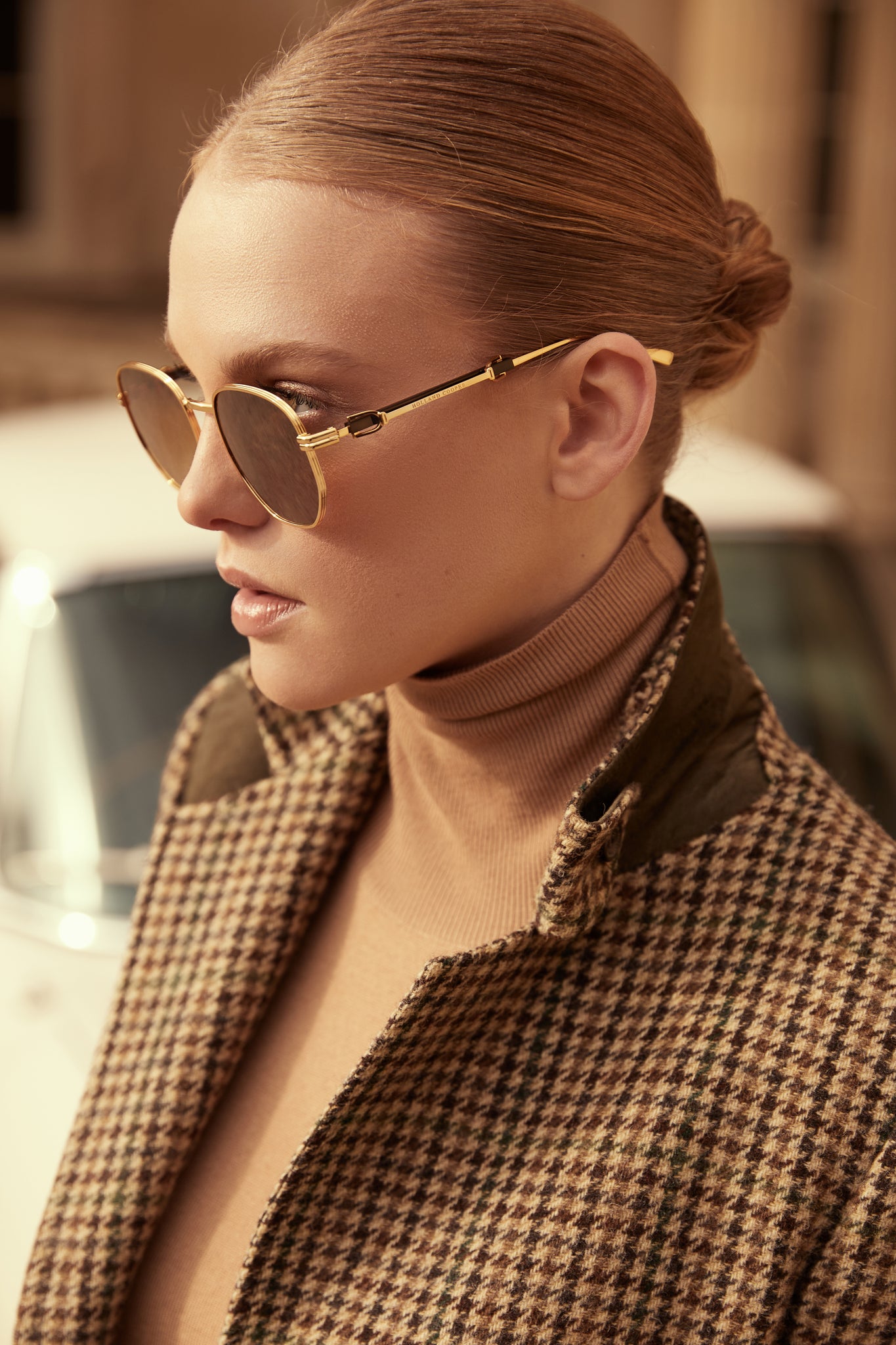 Designed with a contemporary hexagonal shaped frame, these sunglasses have been created with a traditional tinted lens for a luxurious and heritage look. With UV protection and scratch-resistant lenses, these sunglasses are both sophisticated and practical. Kept safe in our hard shell HC monogrammed case.