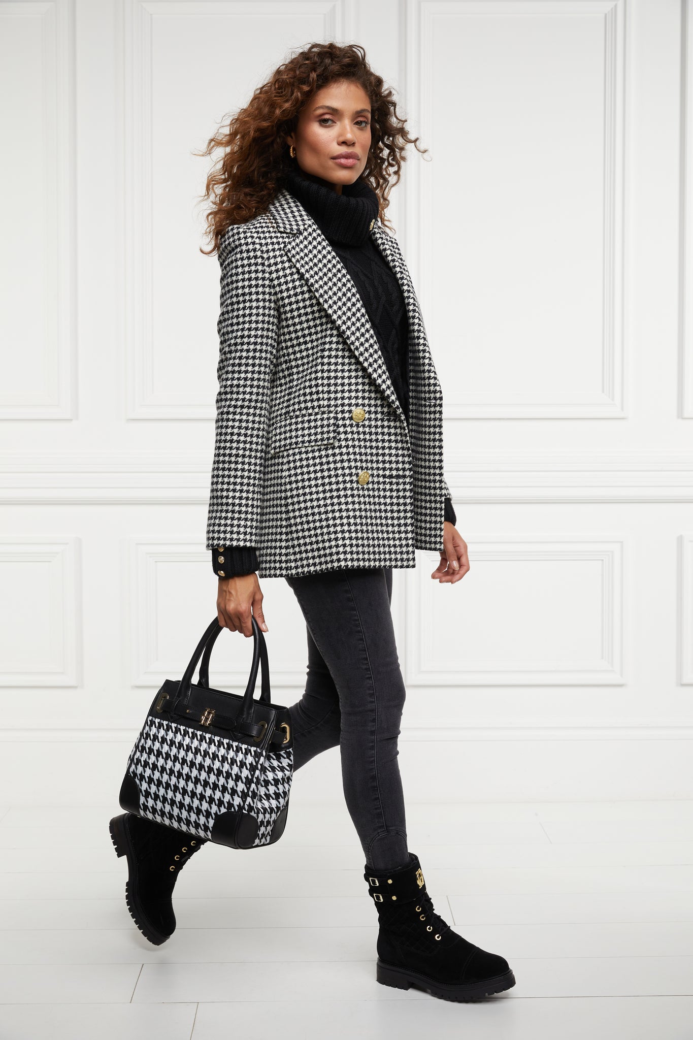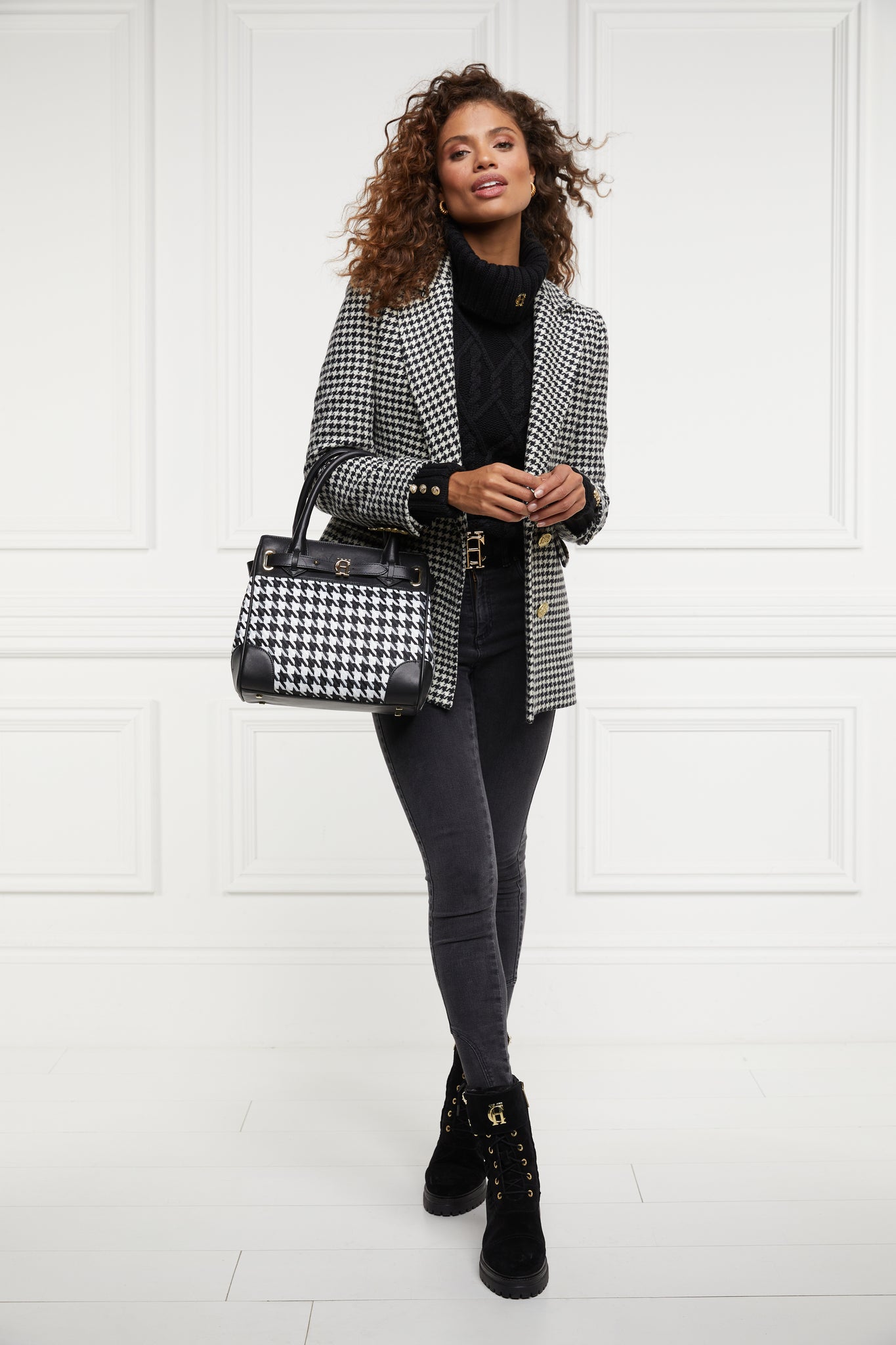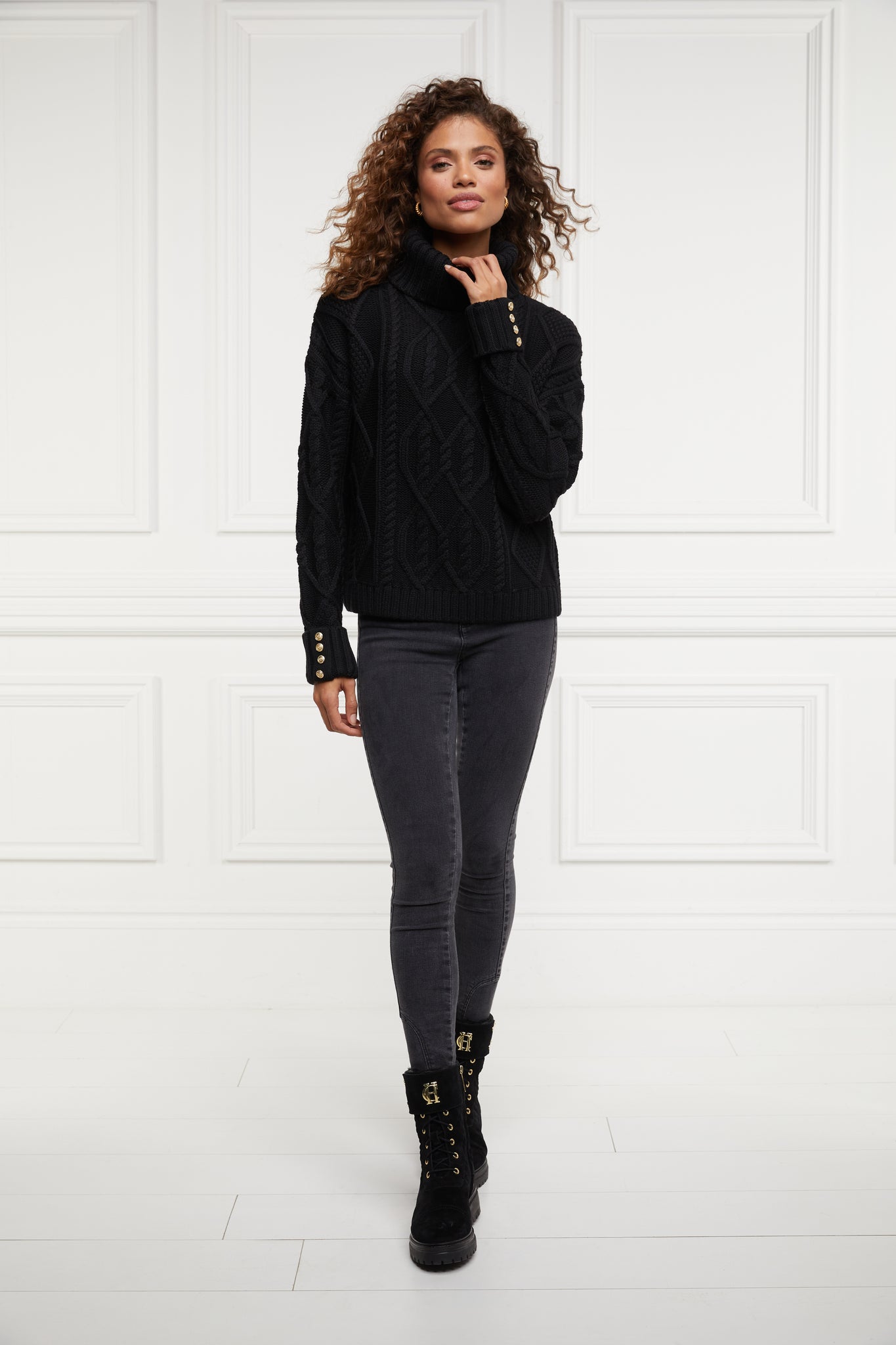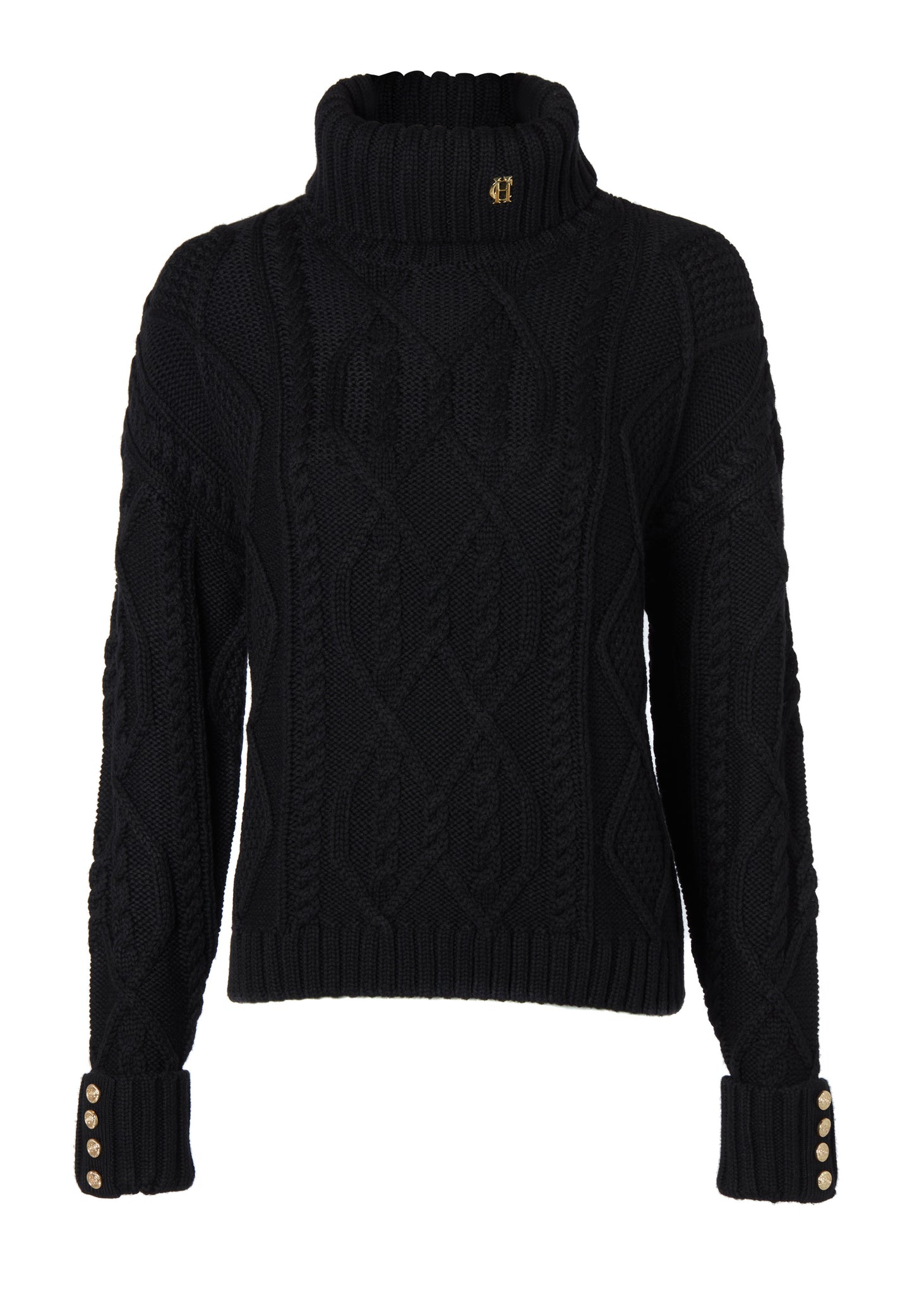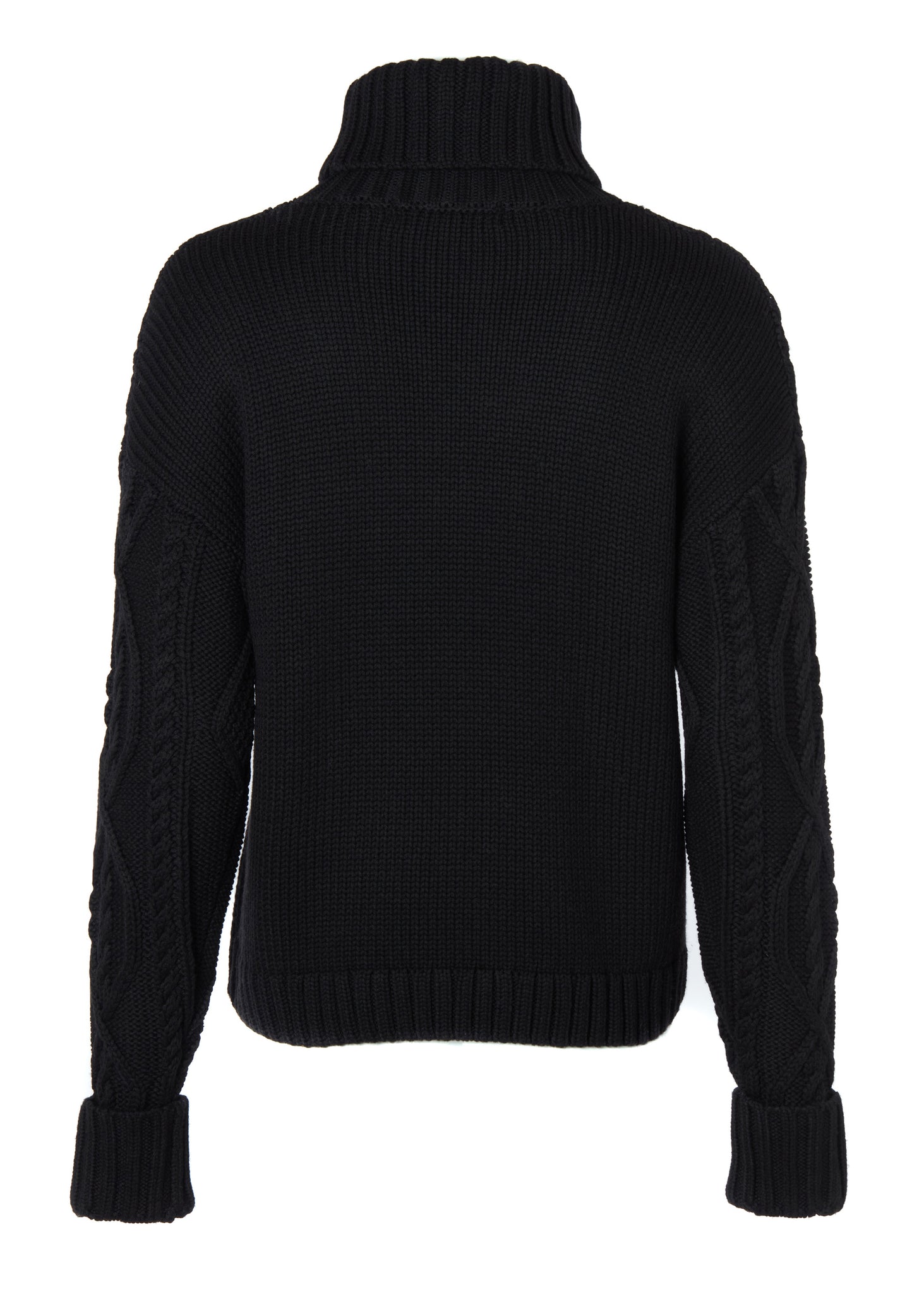 Crafted from sumptuously soft yarns with a modern cable knit design, the boxy fit and drop shoulder makes for a contemporary look & feel. Elevated with our signature gold rivets on the cuffs and HC hardware to the collar.