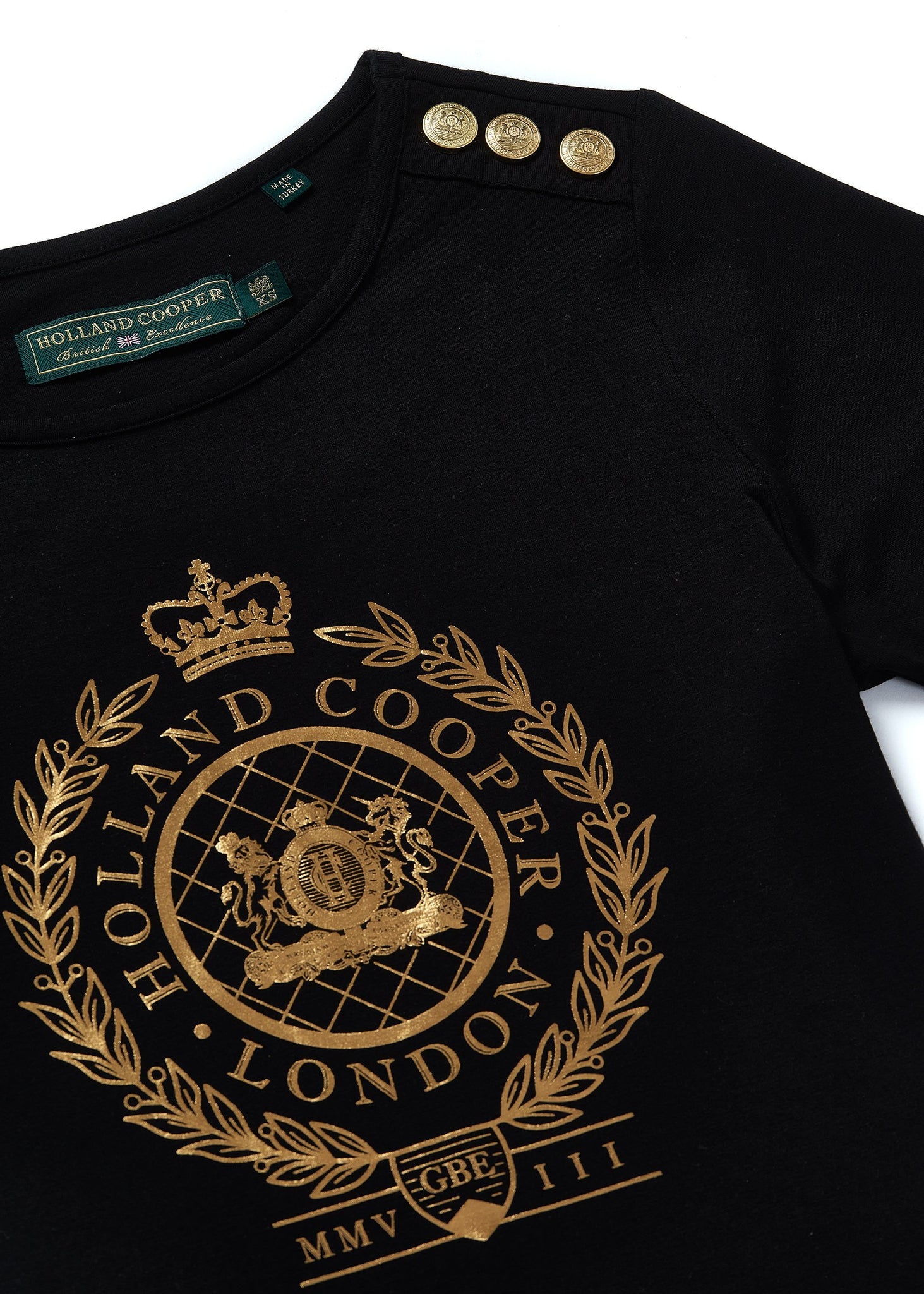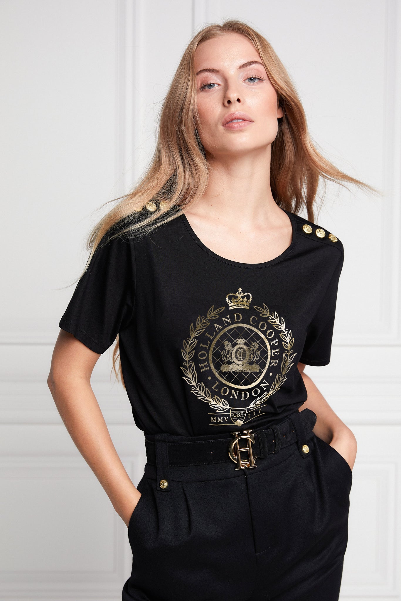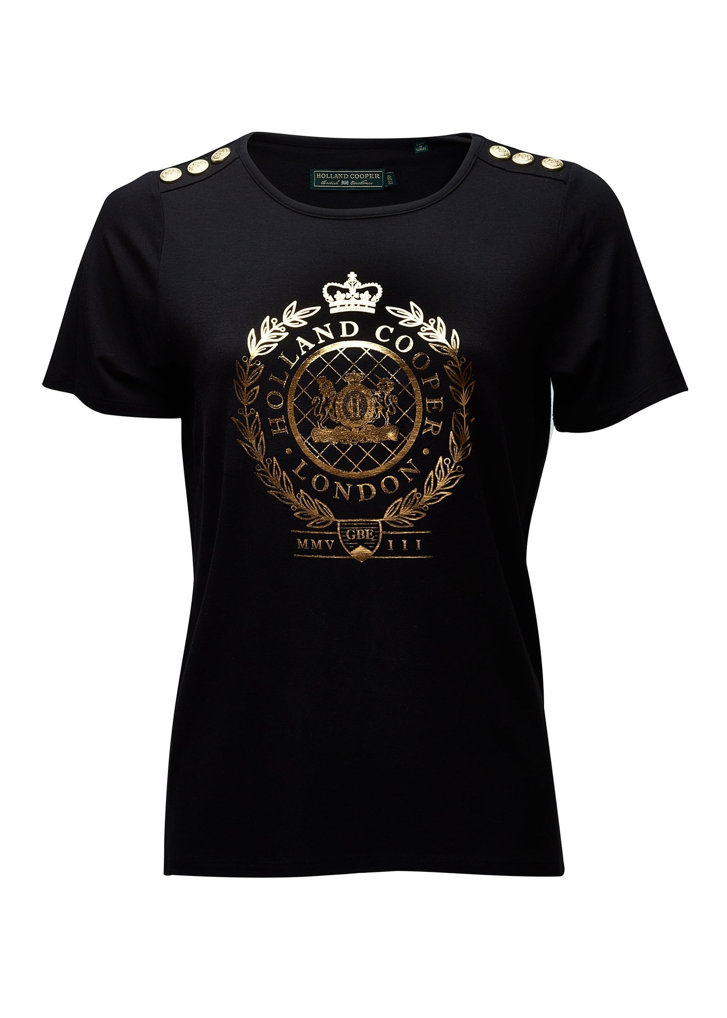 Our easy to wear tees are the ultimate casual wear essential, perfect as a statement piece or simply tucked into our HC Joggers, Biker Jeans or Tailored Trousers to complete the look. Printed with our with signature Holland Cooper logo and prestigious graphics in metallic gold, casual has never looked so good.
