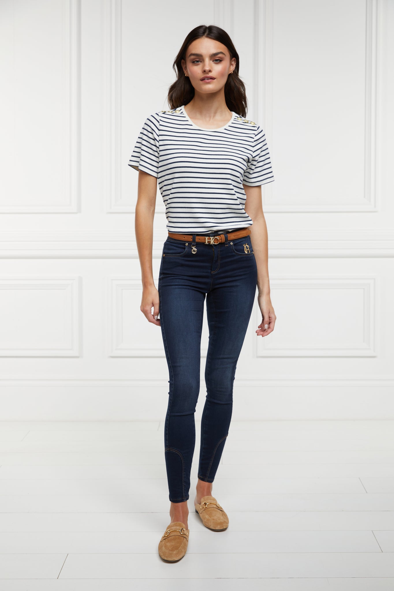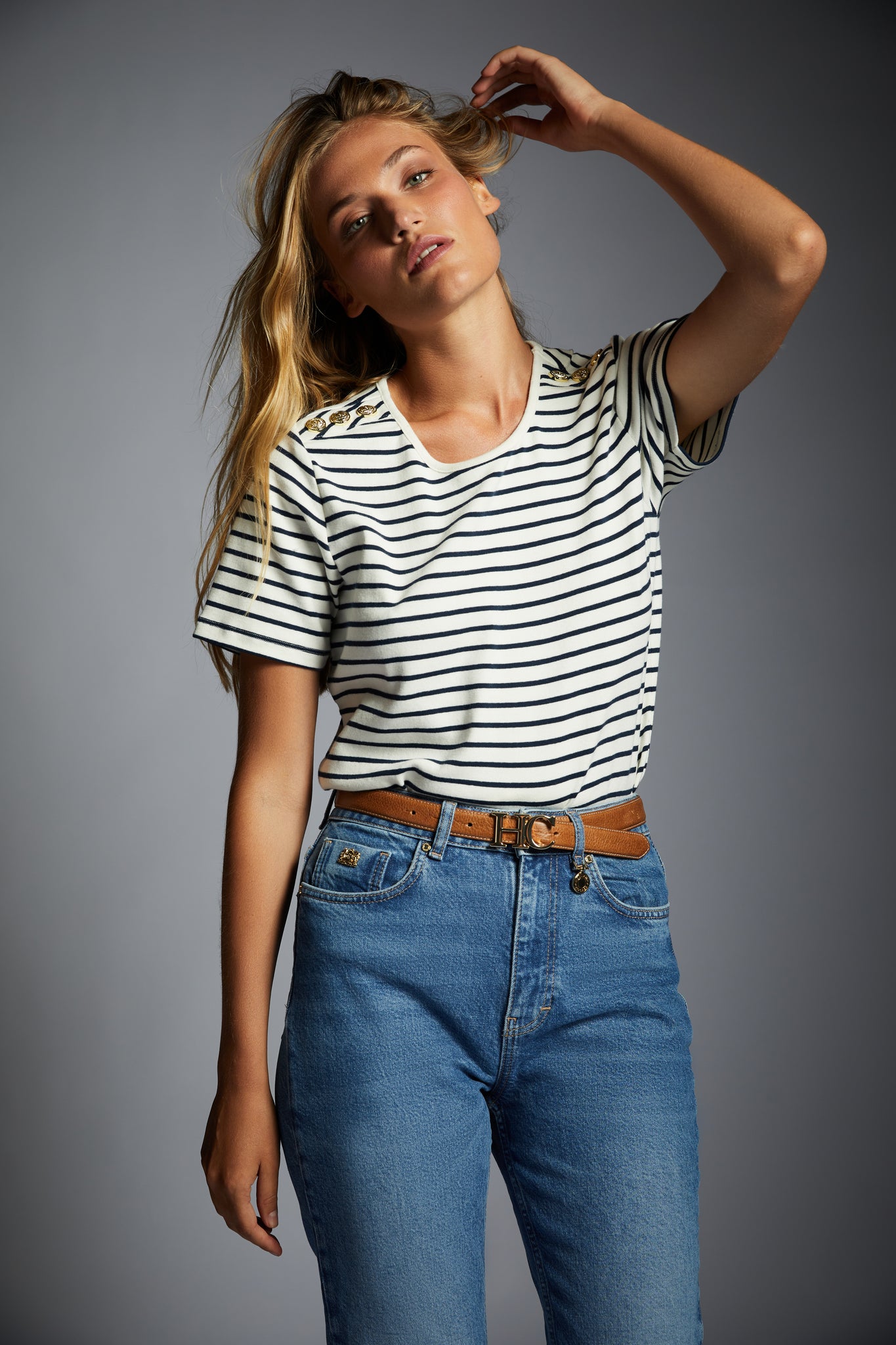Designed for a relaxed fit with short sleeves and a crew neckline, this top is a timeless essential for your wardrobe. Adorned with our iconic HC branding on the shoulders, this piece has been crafted from a luxuriously soft fabric which creates an elegant drape on the body.