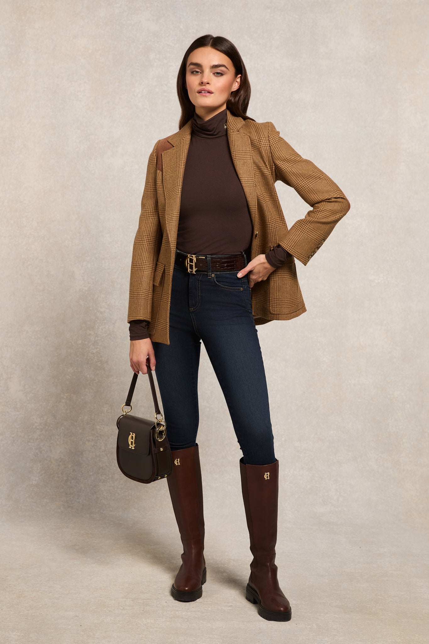 This sophisticated essential features our iconic HC plaque detailing and an exquisitely ruched neckline, creating an effortlessly elegant silhouette. The considered design includes a concealed centre-back zip for a streamlined finish. The sumptuous fabric composition ensures both comfort and durability, while maintaining its impeccable shape wear.