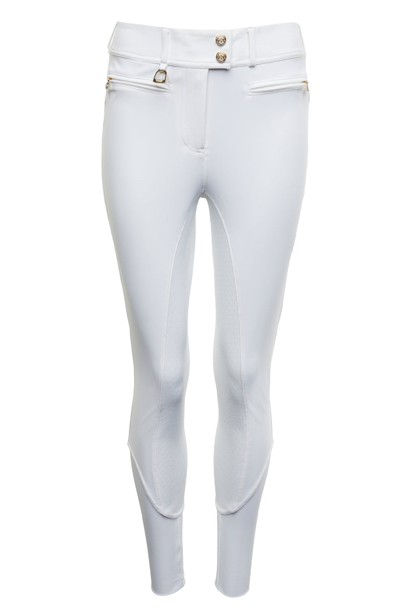 Designed with competition riders in mind, our Premium Competition Mid Rise Breeches will ensure maximum movement and comfort in and out of the saddle, while adhering to GB competition regulations. Mid-rise and perfectly tailored from a breathable 4-way stretch fabric with a Teflon® coating for a super comfortable second skin feel. Designed with practical lower-leg jersey panels, reducing bulk and increasing comfort when wearing riding boots. Fit with Framilon grip tape applied to inner waistband to prevent shirts from riding. Embellished with Swarovski® crystals on the logo and pockets, combining technical performance and style.