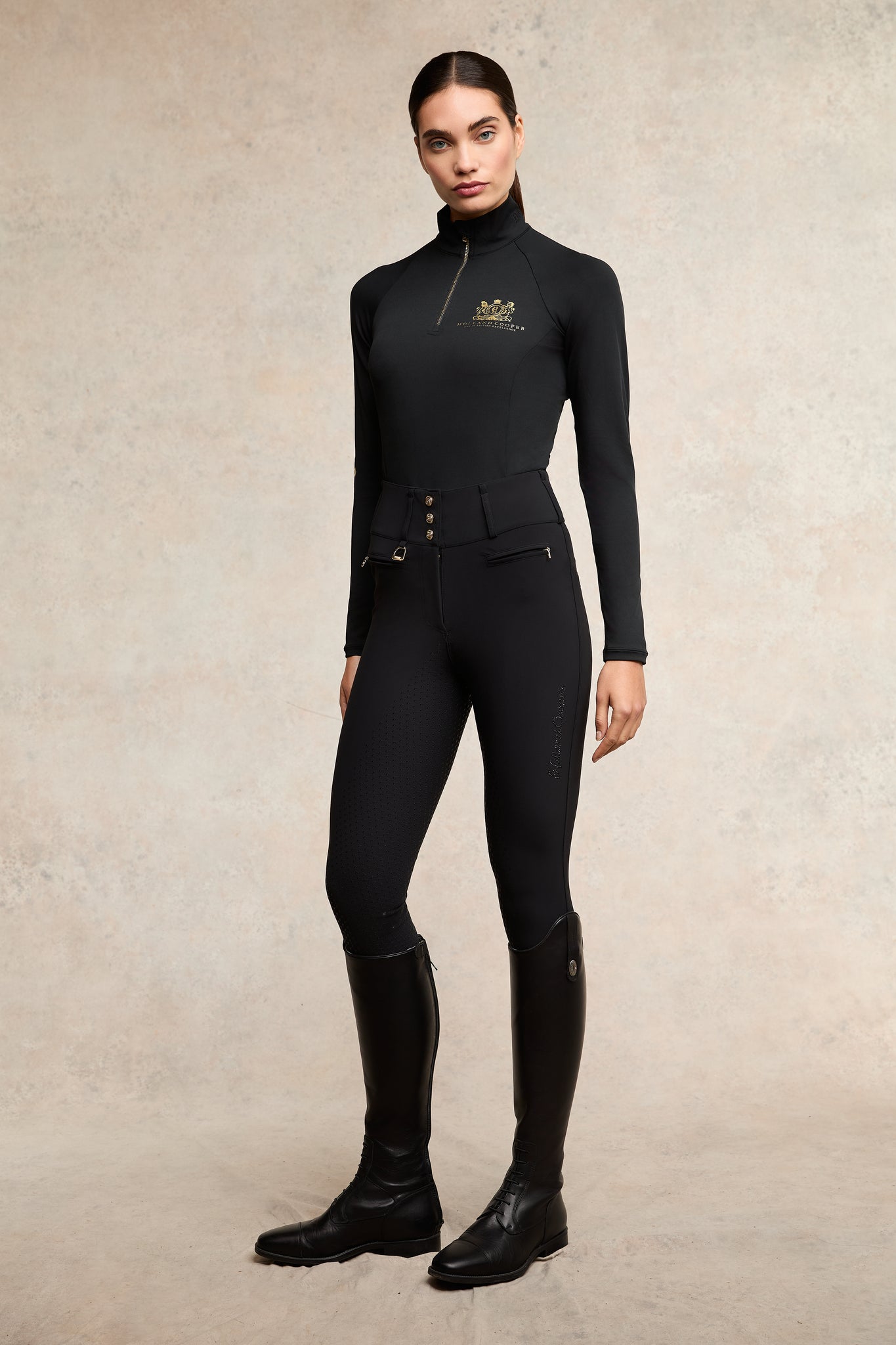 - HC monogram grip print to seat & inner thighs for increased control in the saddle