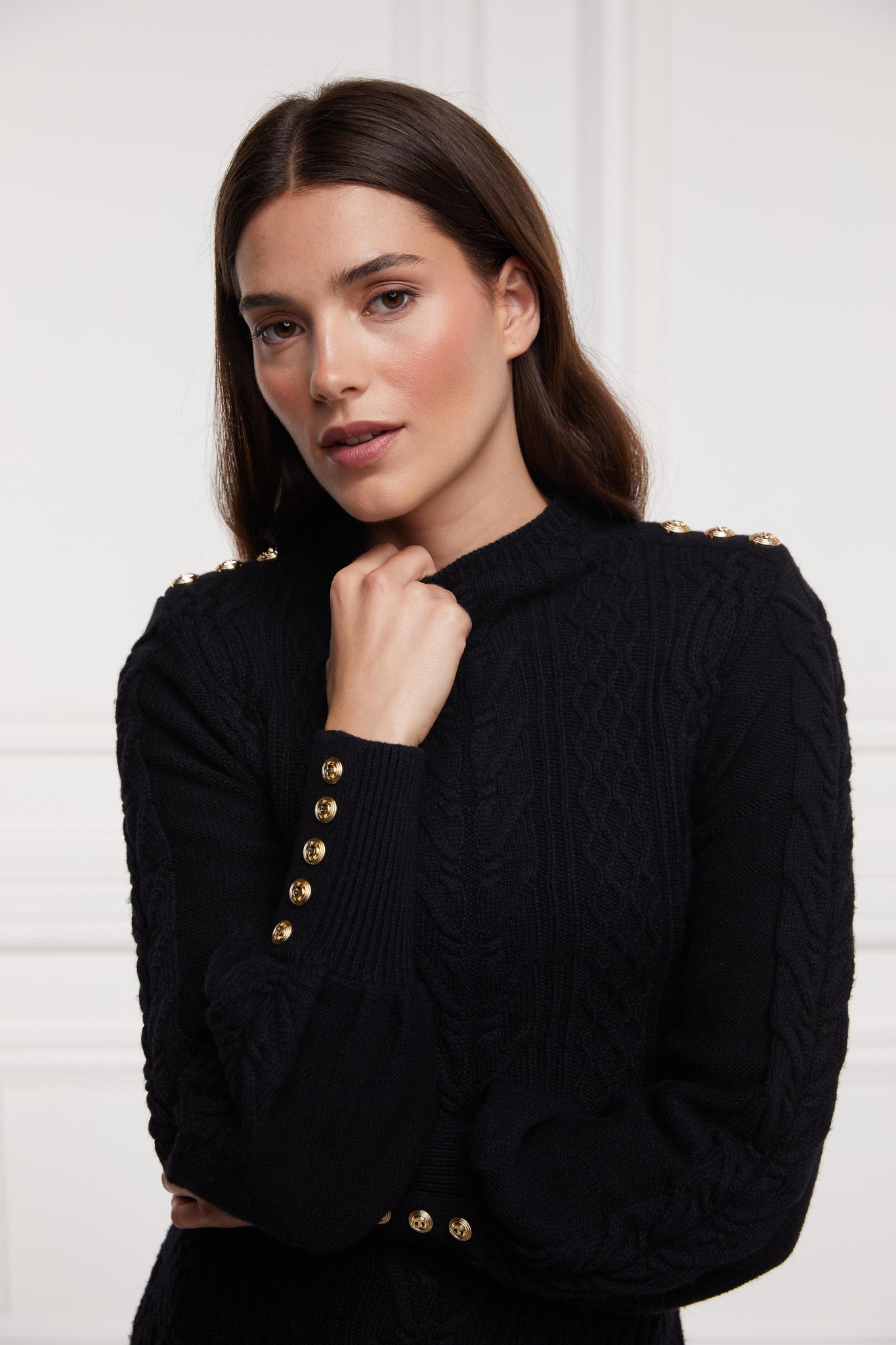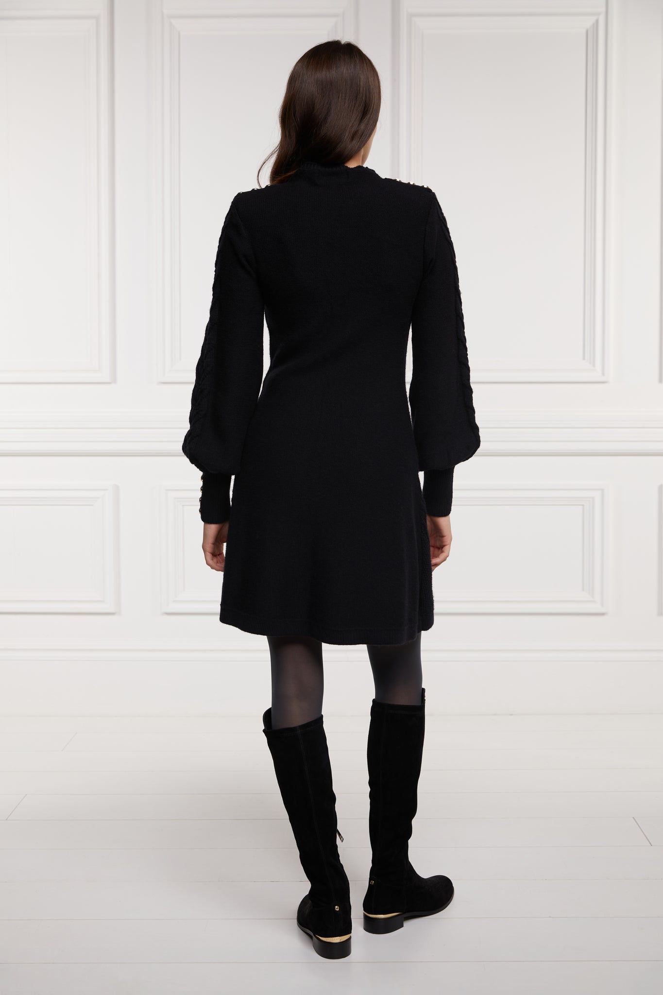 Designed with voluminous sleeves and a high neck, this knitted dress is both feminine and elegant. Created with a fit and flare silhouette and beautifully detailed with subtle cable knit panelling to the body and sleeves. Finished with our iconic HC rivets.