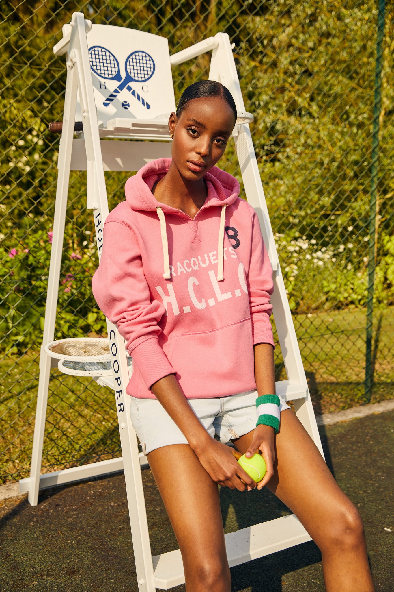 This relaxed fit hoodie is created from a blend of premium cotton yarns with a luxurious waffle lined adjustable drawstring hood. The front and back are detailed with a faded graphic for a vintage effect. Designed with a large front pocket, ribbed hems and side rib panelling.