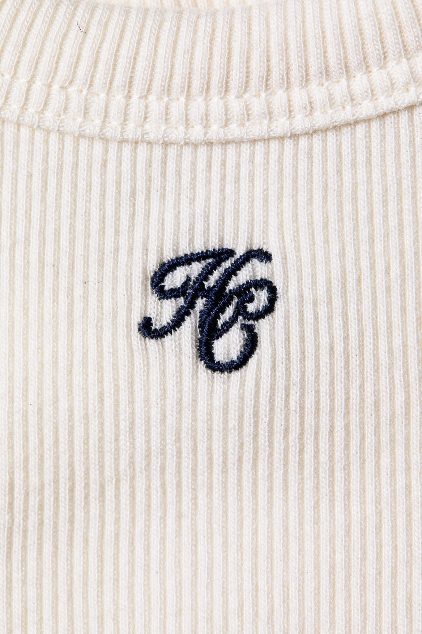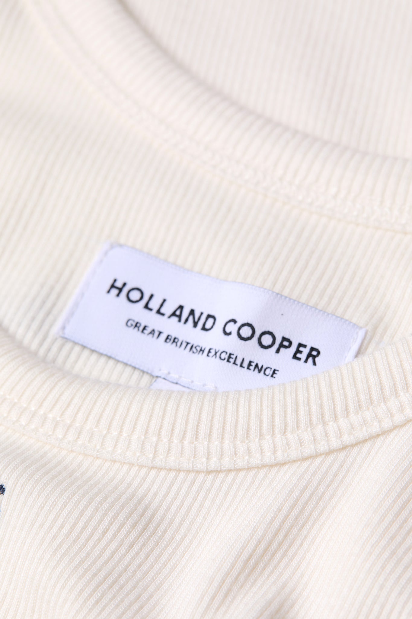 Elevate your essentials with our Rebecca Rib Tank in timeless Natural. This refined staple features our signature HC embroidery at the neckline, lending a subtle touch of luxury to its classic silhouette. Expertly tailored for a sleek, slim fit, the premium cotton-elastane blend ensures both comfort and sophistication. A versatile foundation piece that epitomises understated British elegance.