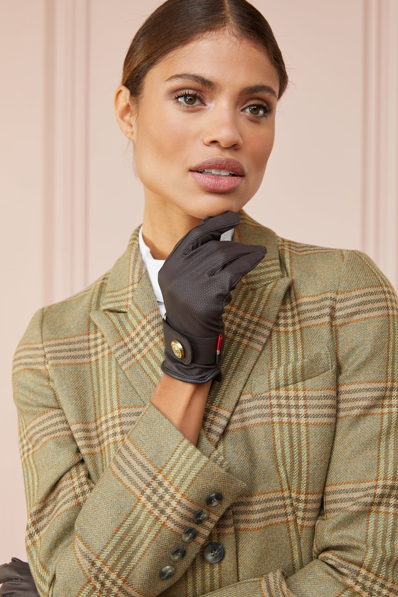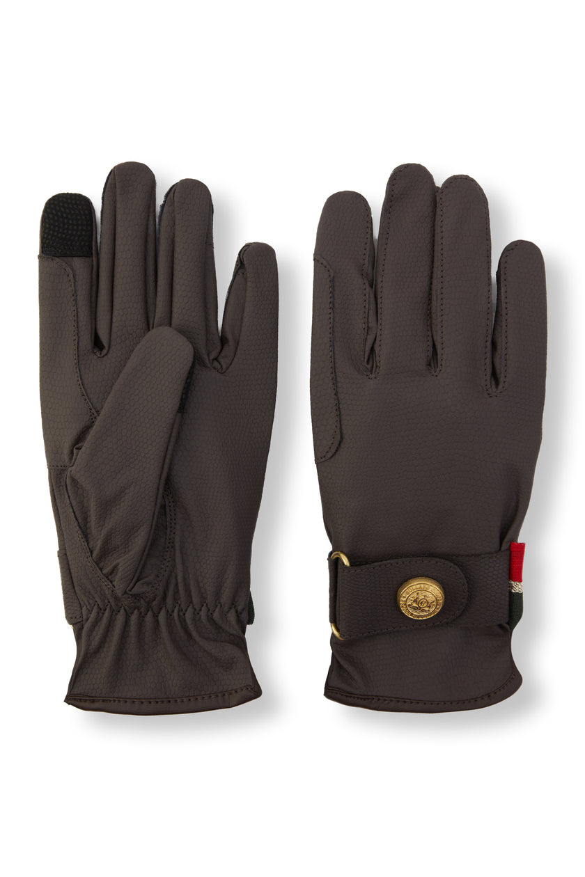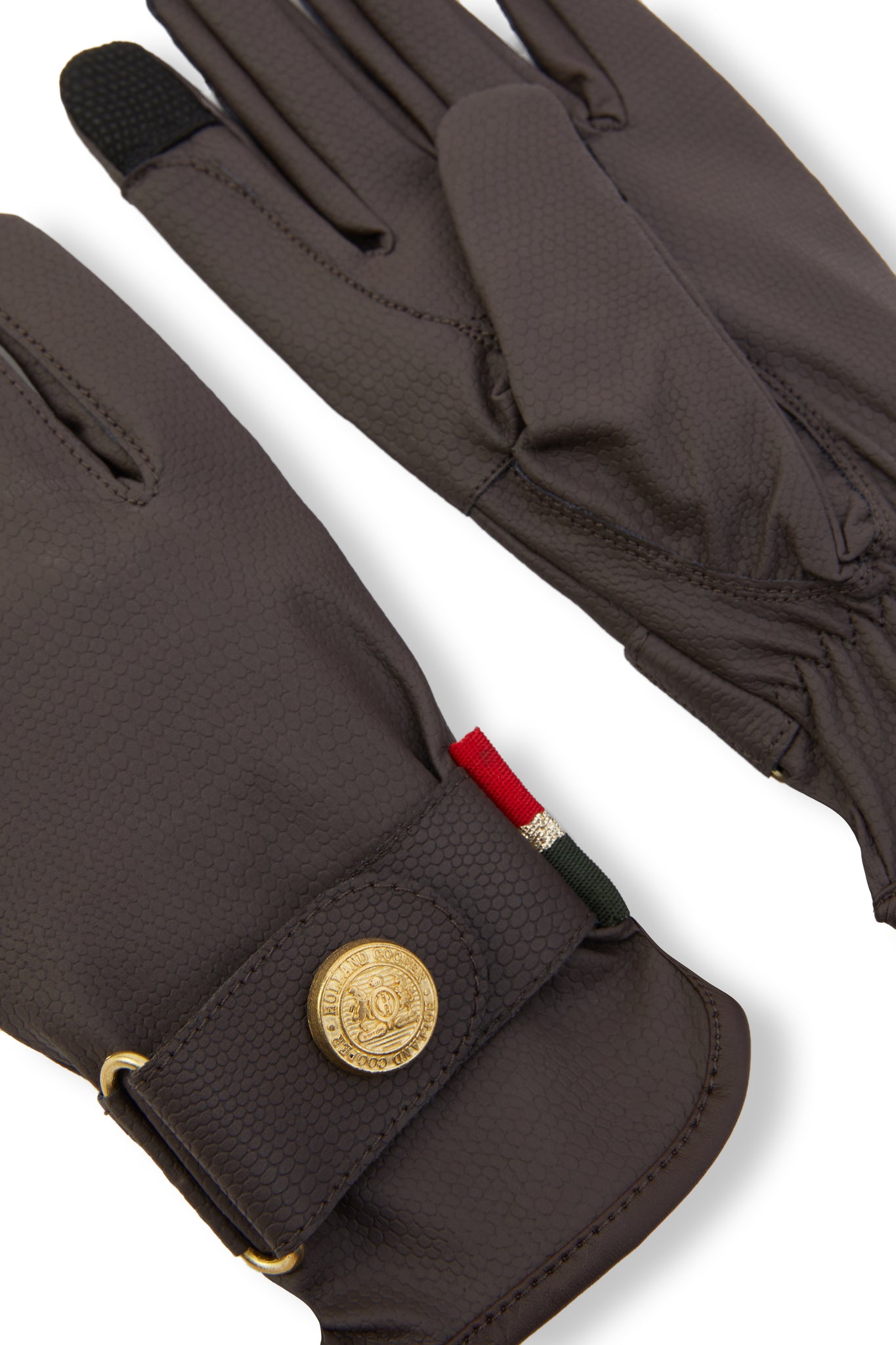 Our technical riding gloves are made from soft, supple fabric to fit like a second skin. Grip-enhancing while allowing for maximum movement, the sleek, ergonomic design aids performance and offers greater grip on the reins. Accessorised with a custom strap to suit all sizes with signature Holland Cooper branding.