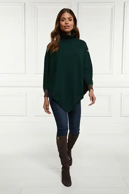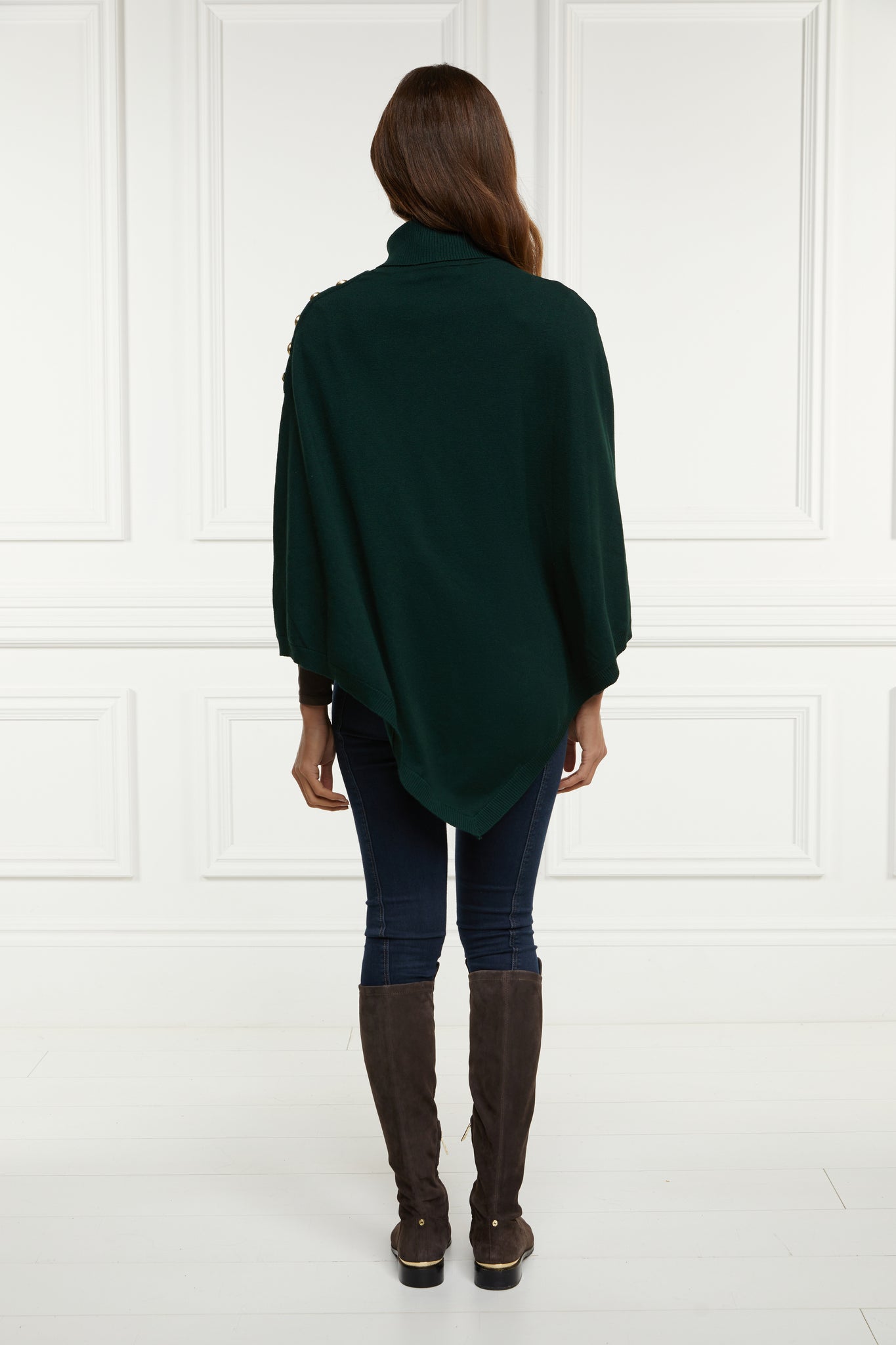 Minimalist and stylish, this roll-neck cape pairs perfectly with every outfit. Super soft and lightweight, this cape can be easily worn over everything from shirts to dresses. Featuring an asymmetric back and front with our iconic gold hardware to one shoulder.