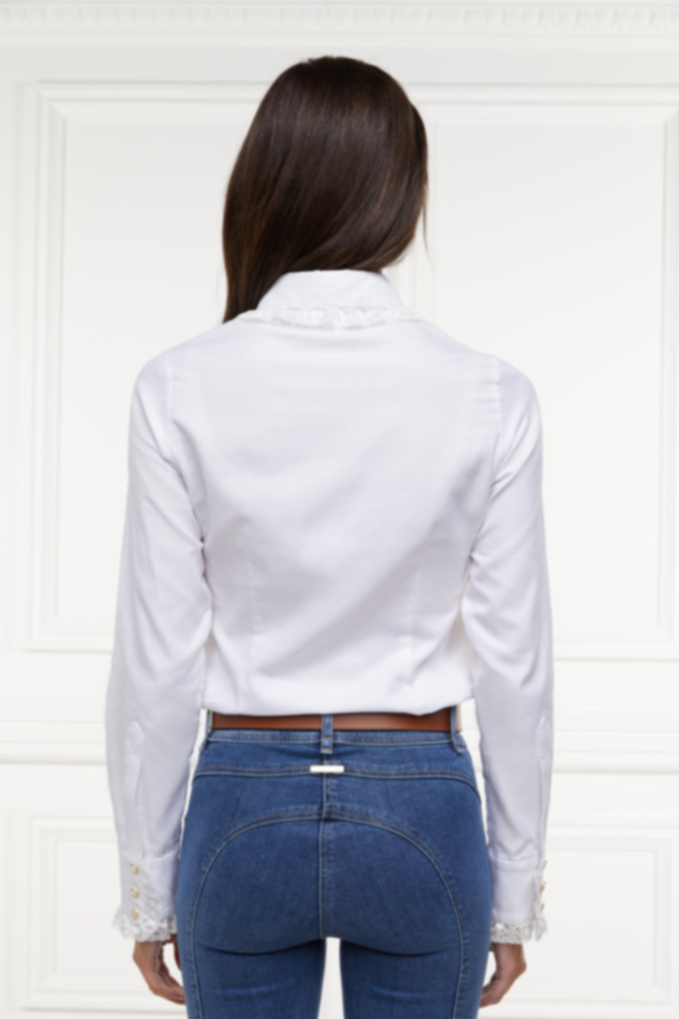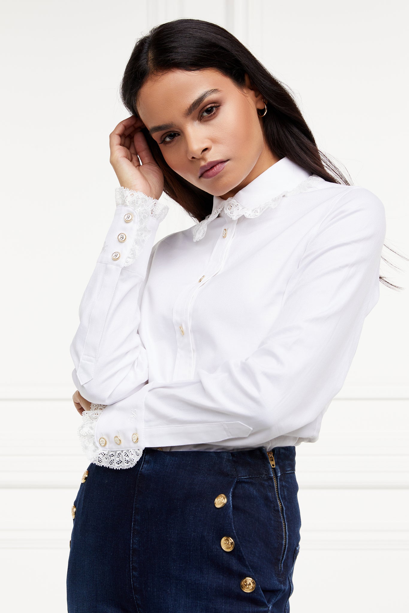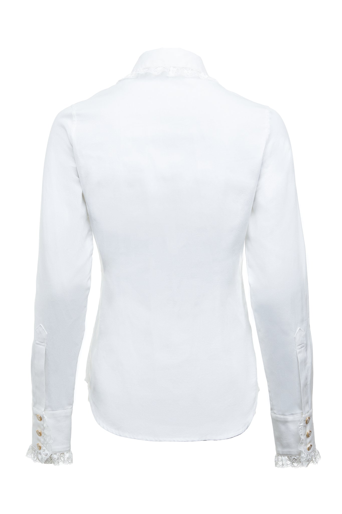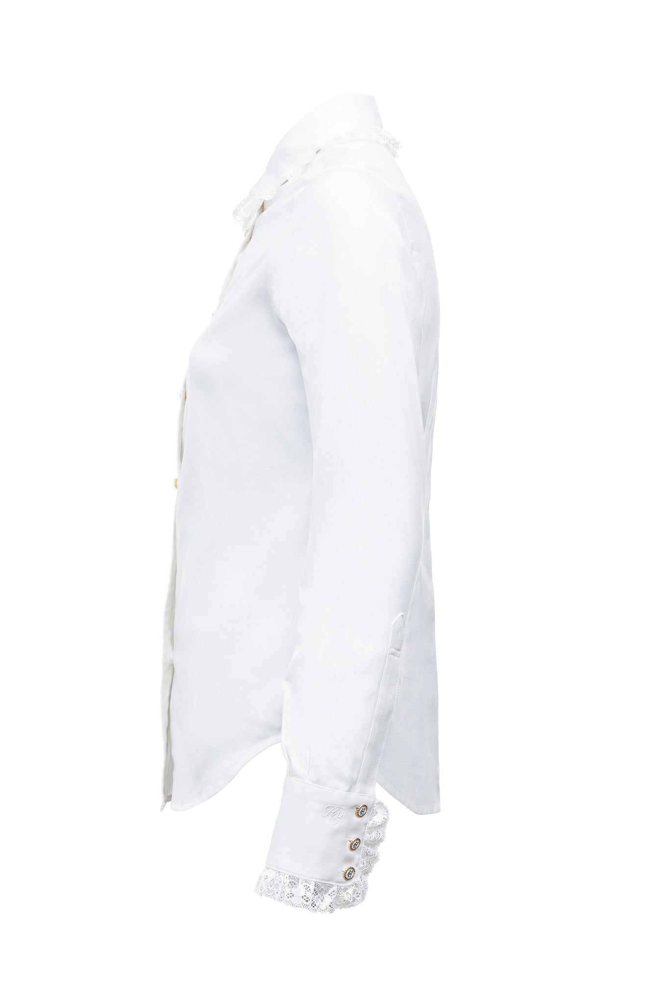 The Rose Shirt puts a romantic spin on a classic white shirt, and the results are the epitome of beauty and femininity. It's made from sumptuously soft cotton and finished with delicate lace trim around the collar and cuffs.