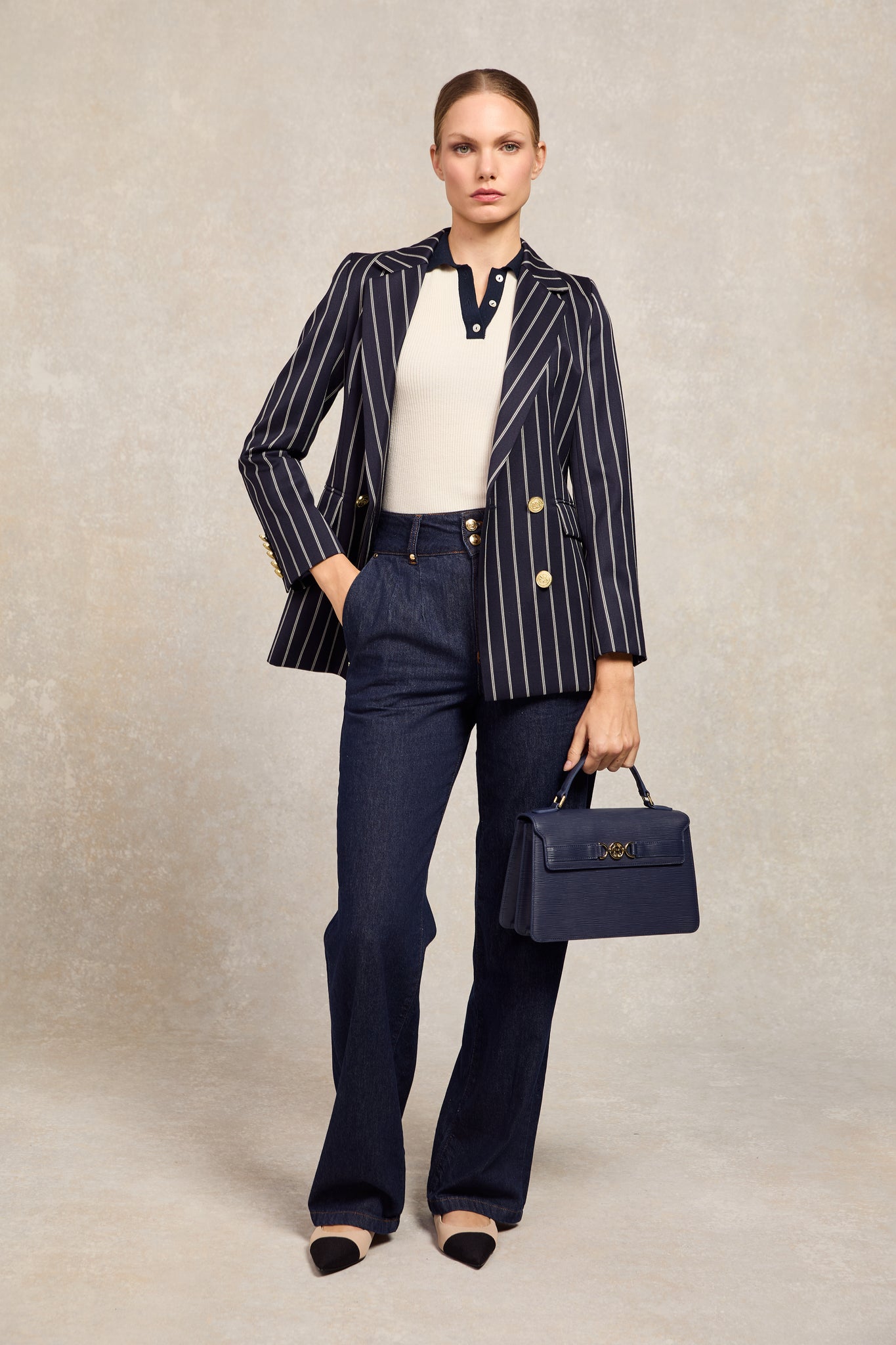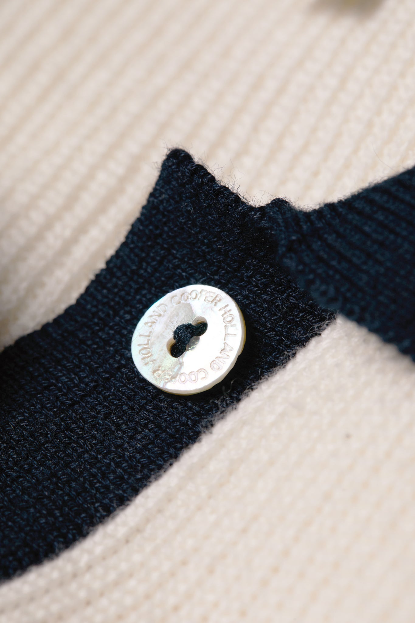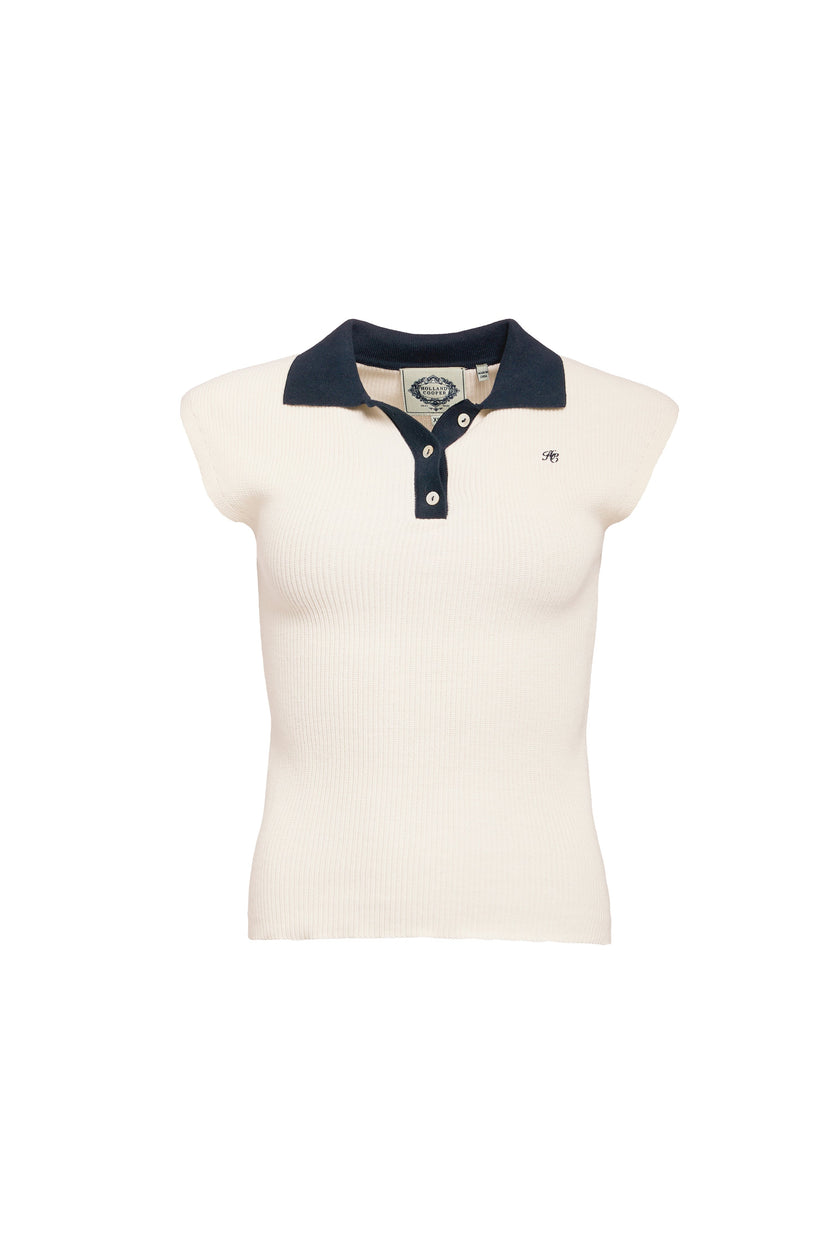 This polo knit is designed to hug your silhouette with its ribbed texture, ensuring a flattering slim fit. The capped sleeves add a touch of feminine grace, while the contrast collar and placket provide a classic, refined edge. Each detail is meticulously thought-out, including our signature branded shell buttons, adding an exquisite touch of elegance to this staple piece. Perfect for transitioning effortlessly from a casual day out to an evening ensemble, the Scarlett Polo Knit is a versatile addition to any wardrobe.