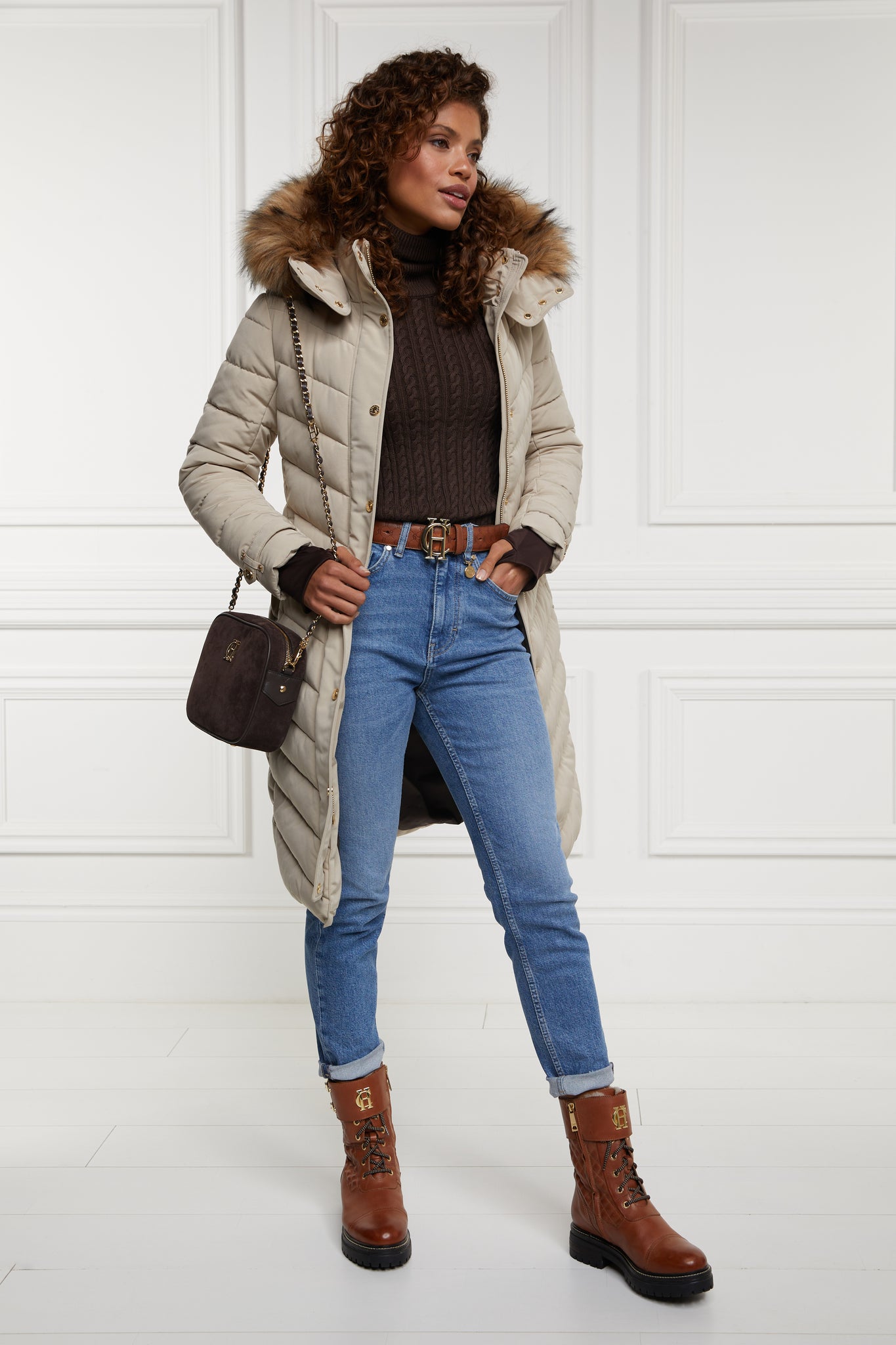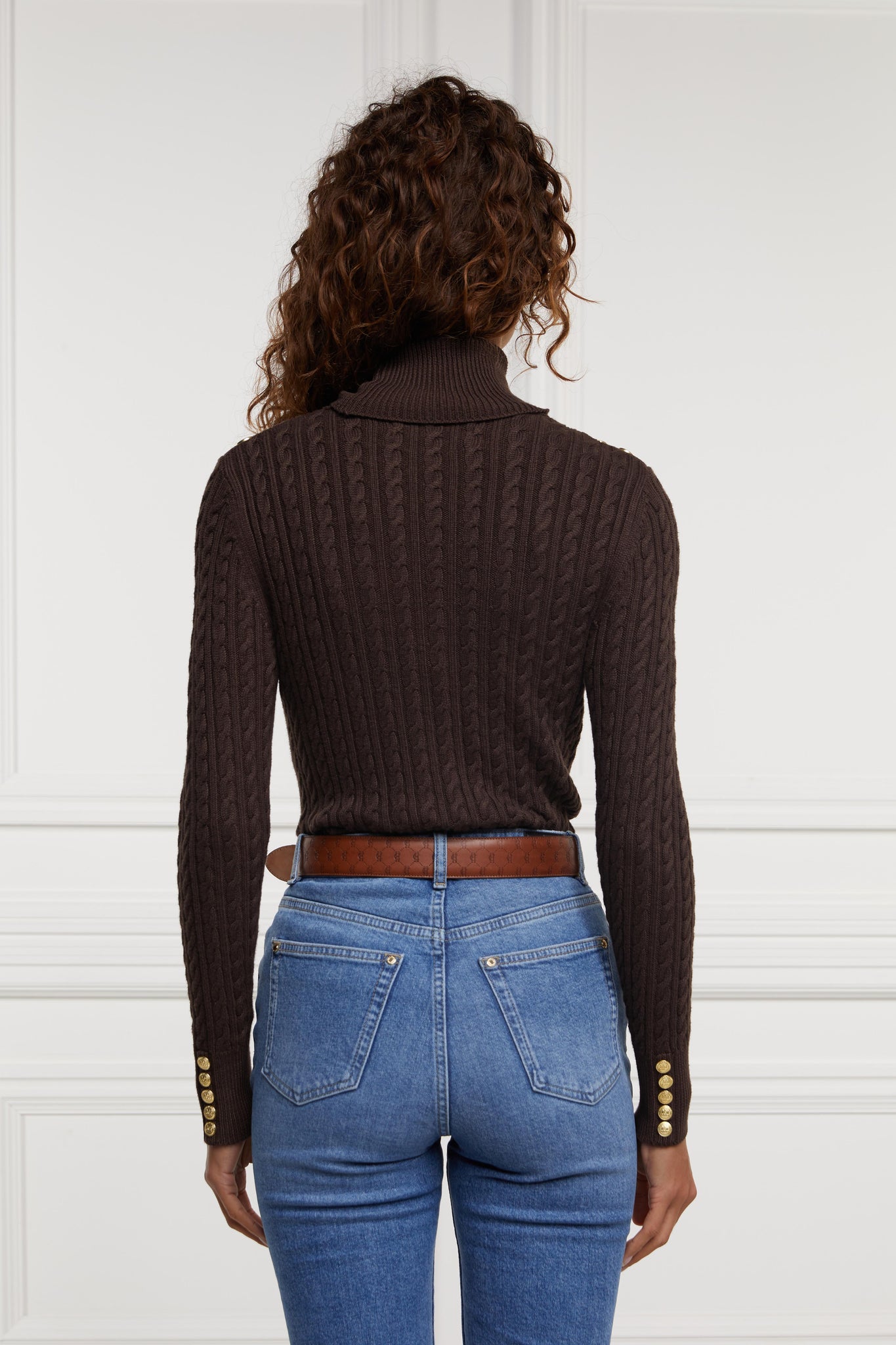 Designed with a slim silhouette and relaxed roll neck, this lightweight cable knit jumper has been curated from a super-soft yarn. With iconic HC hardware on both the cuff and shoulders, this knit wears perfectly tucked into our jodhpur jeans.