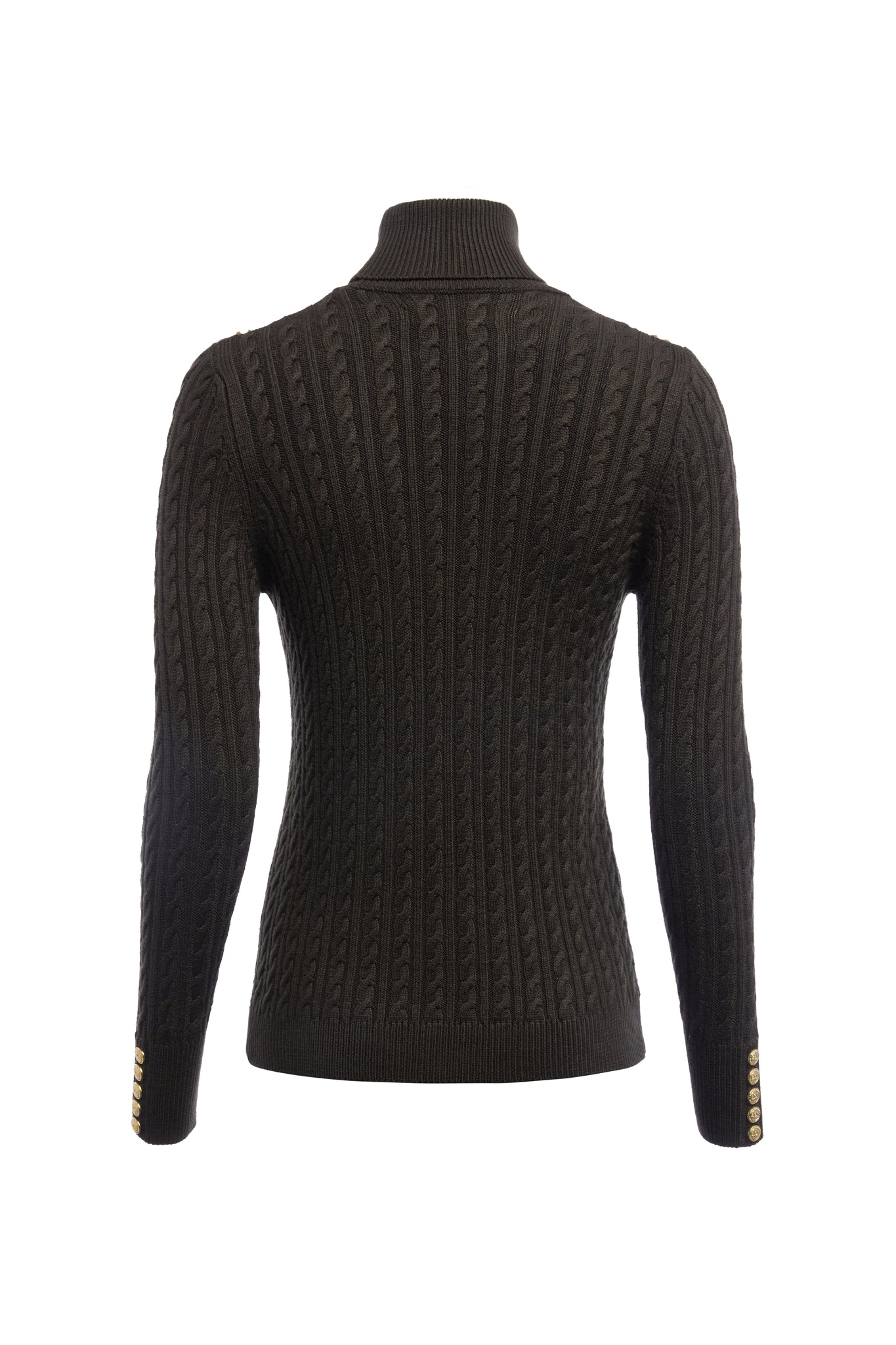 Designed with a slim silhouette and relaxed roll neck, this lightweight cable knit jumper has been curated from a super-soft yarn. With iconic HC hardware on both the cuff and shoulders, this knit wears perfectly tucked into our jodhpur jeans.