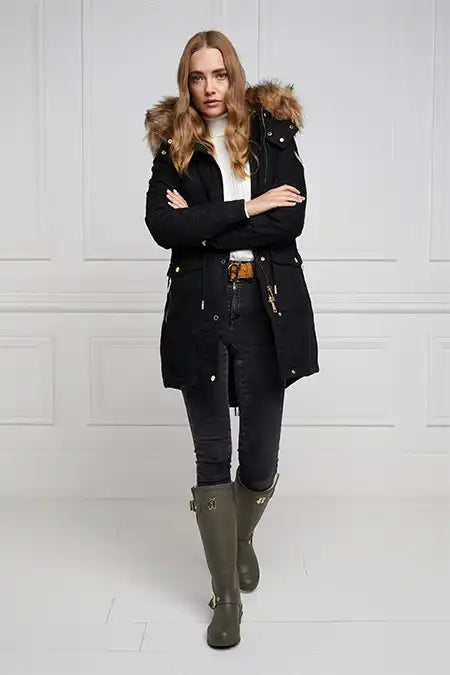 The superior full thermal sherpa lining is engineered to keep your feet and lower legs insulated, cosy and warm at all times. This eye-catching boot is adorned with iconic HC hardware and strapping details. Complete with side gusset allowing for an adjustable leg width ensuring our wellington boot fits across a range of calf sizes comfortably. Packed and travelled within a large HC signature green and gold boot box.