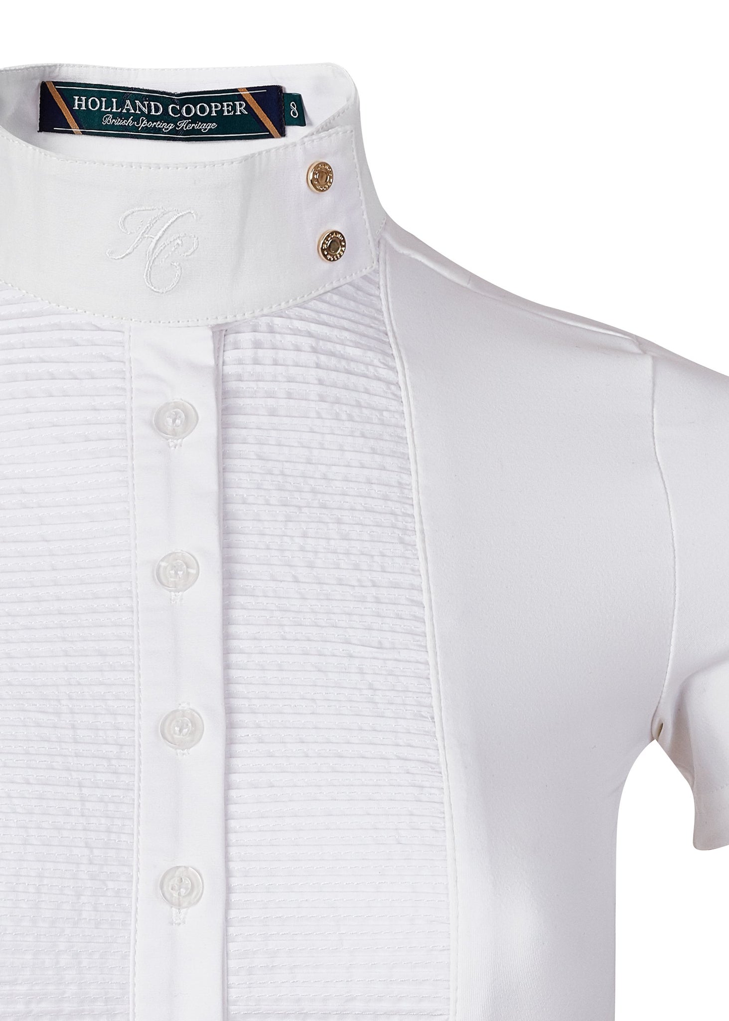 Our Competition Show Shirt is the perfect competition shirt for riders. Designed in a performance material to regulate body temperature and wick moisture away from the body, this shirt is both stylish and practical. With a slight stretch for comfort and detailed with tonal embroidery, pin tuck bib and mandarin style collar, this truly is a luxurious piece for riders.