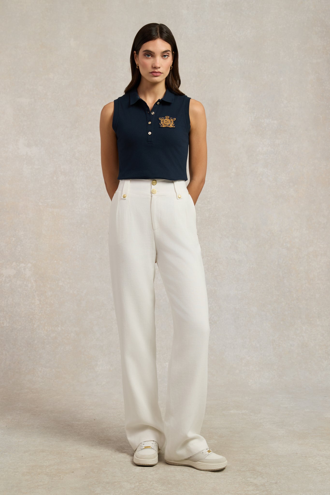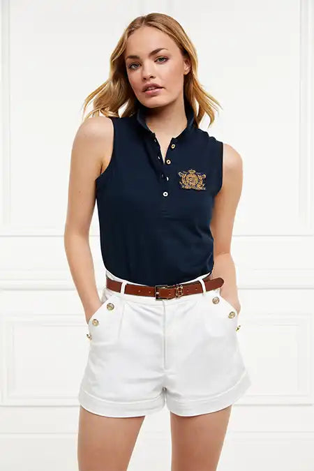 Made from a breathable cotton fabric which feels wonderful on the skin with a slight stretch to provide ultimate comfort. This sleeveless polo shirt is made from a lightweight fabric to keep you cool during warmer weather. Detailed with a HC embroidery to the chest, embellished with sequins.