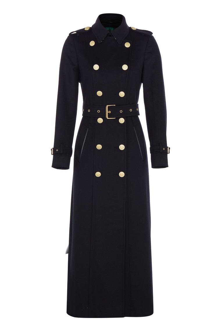 Classic and timeless, the Marlborough full length trench coat is a wardrobe staple and a lifetime investment. A fitted design that complements any figure, its double breasted-front and belted waist adds to the flattering definition that stands at the forefront of its design.