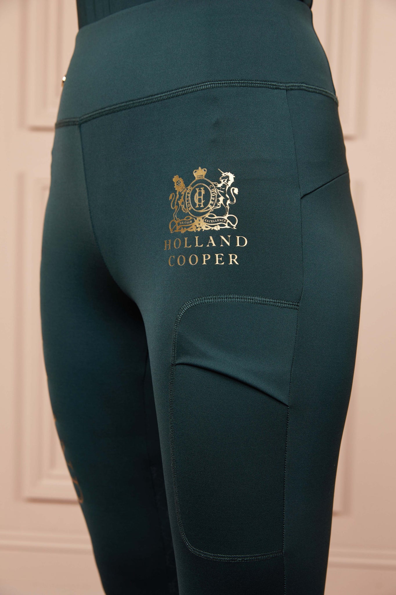 Our technical riding legging are designed to ensure maximum movement and comfort whilst in and out of the saddle. Our high-waisted, body contouring compression fabric feels like a second skin and allows for flexibility of movement. Complete with HC monogram grip to the inner thighs for increased control in the saddle. Finished with our signature gold hardware.