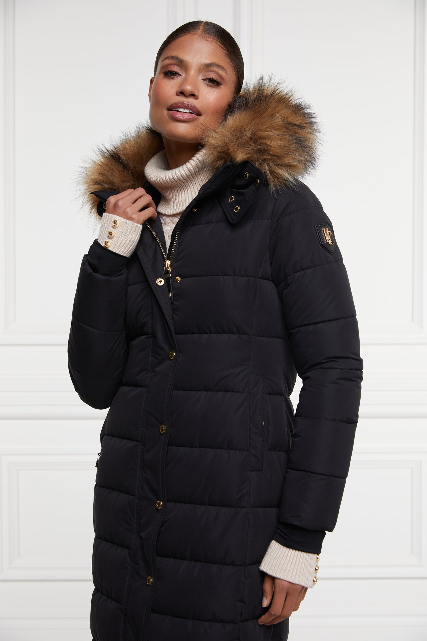 Designed with a longline silhouette and slim fit, the Stoneleigh Longline Coat has been meticulously crafted to ensure style, warmth and practicality. With a detachable faux fur hood collar, neoprene storm cuffs and eco-fill, this piece is ideal for chilly winter days whilst ensuring you still look put together. Finished with our iconic HC hardware and tonal embroidery. -