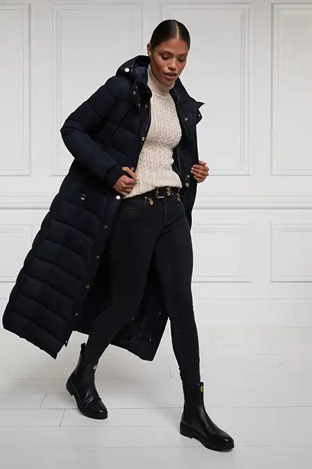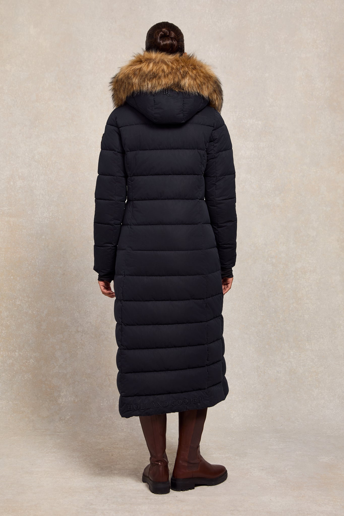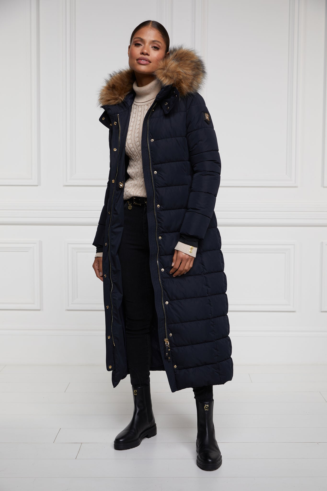 Designed with a longline silhouette and slim fit, the Stoneleigh Longline Coat has been meticulously crafted to ensure style, warmth and practicality. With a detachable faux fur hood collar, neoprene storm cuffs and eco-fill, this piece is ideal for chilly winter days whilst ensuring you still look put together. Finished with our iconic HC hardware and tonal embroidery. -