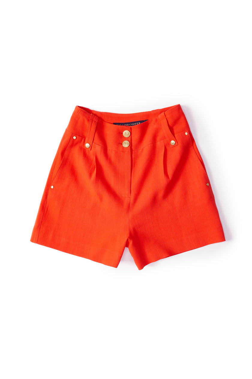 Combining timeless style with modern sophistication, these Tailored Shorts have been crafted from a luxury Linen blend, with two single knife pleats and signature gold rivets. The high-waisted design provides a flattering silhouette, making it a must-have when composing a relaxed, yet sophisticated aesthetic.