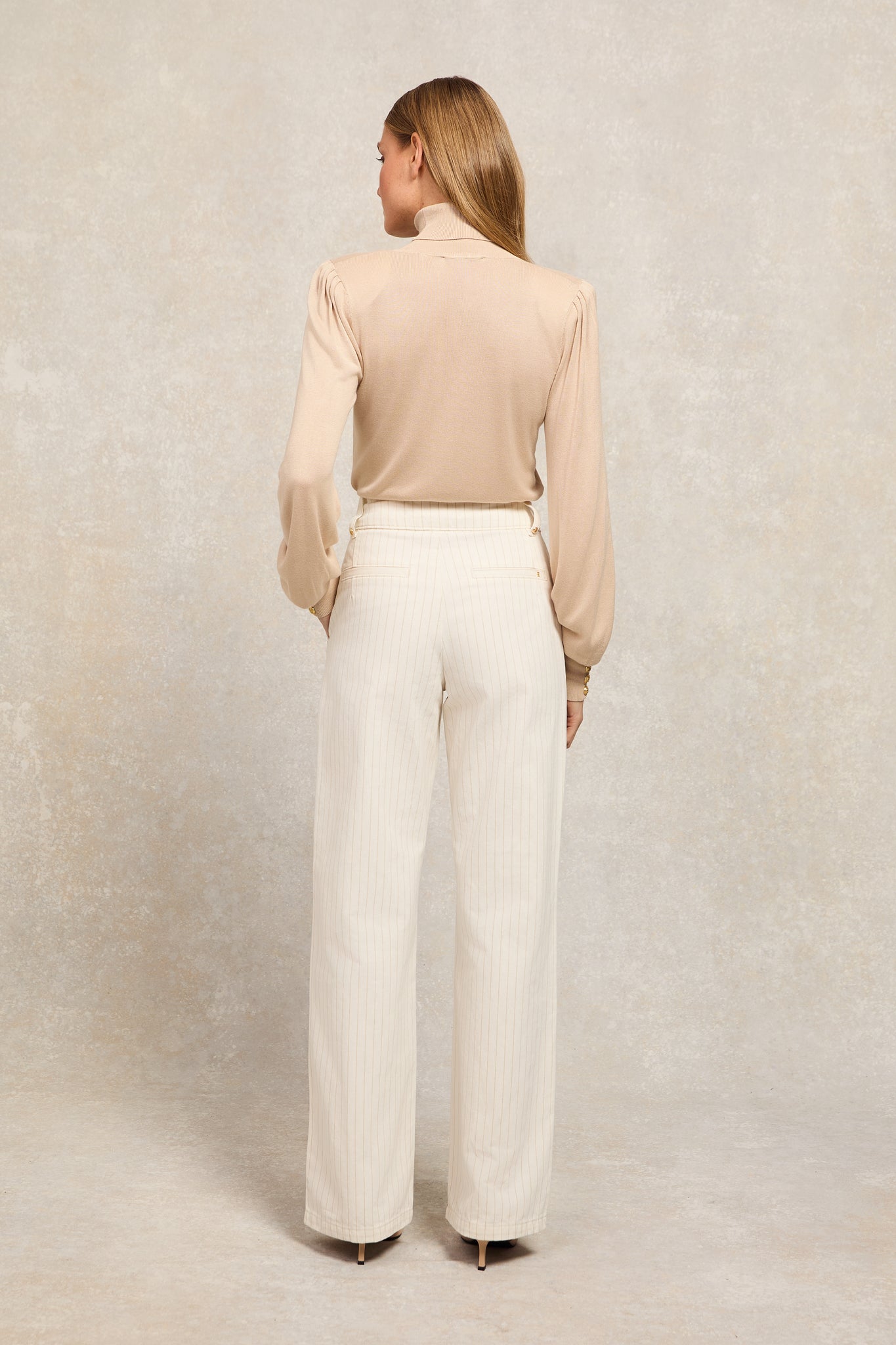 Simple and refined, these wide-leg jeans have been cut with the same silhouette as our iconic tailored trousers. Cut from soft denim with a high rise waist, the pleated fronts have been designed to create an elegant drape over the leg. Elevated with classic jean pockets and accentuated with our signature gold hardware, these jeans are the perfect combination of smart and casual.