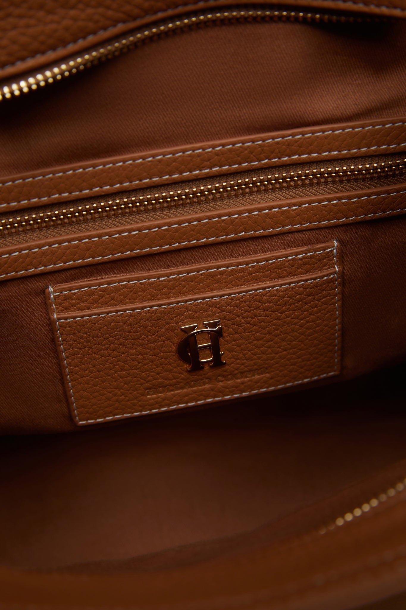 Crafted from a lightly tumbled suede leather, this bag has been created to work in your wardrobe season after season. With a fully structured design, this spacious bag has a front HC gold-trimmed belt construction with gold-domed feet at the base & contrasting white stitching. Detailed with an internal zip pocket with card slot and zip pocket. Carry it by the twin top handles for a laidback look.