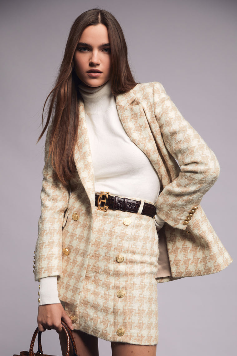 Designed to create a sharp tailored silhouette worn open or closed, the Double Breasted wool Blazer has been handmade in the UK. Crafted from a classic and contemporary pinstripe fabric & fully lined with a luxury stretch lining for extra comfort, this piece is a must-have staple for your wardrobe. With bold lapels & subtle hip pockets, each blazer has been elevated with HC signature gold hardware to the front and cuffs.
