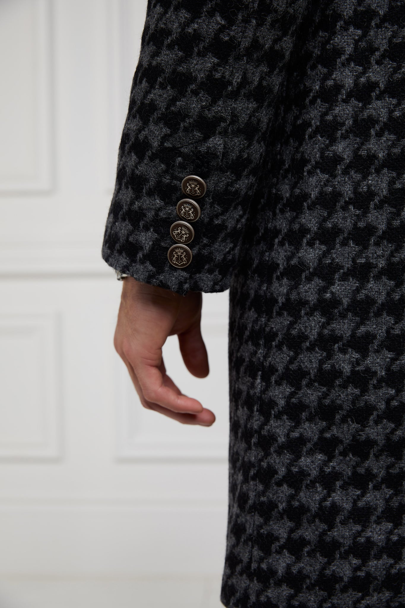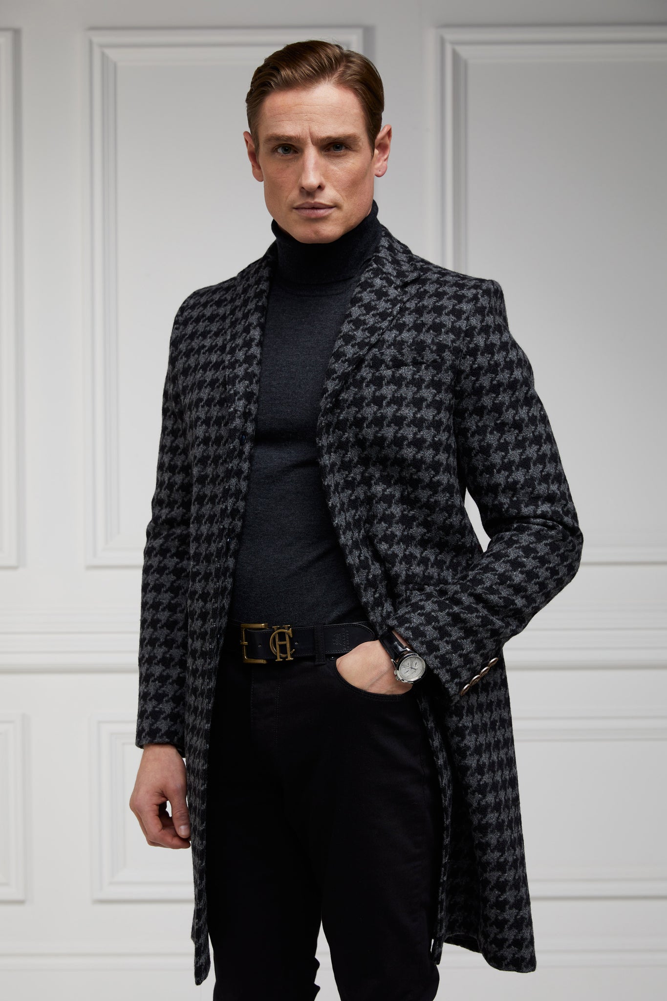 Hand crafted in the UK using the finest wools and meticulously tailored for a crisp, clean appearance, The Cheltenham Coat is the epitome of effortless style. This single-breasted mid-length coat is framed by slightly padded shoulders for a sharp silhouette, featuring classic notch lapels and horn style button fastenings. Pop the collar to reveal our hidden fabric detailing that matches the internal double-welt ticket pocket. Finished off with functional cuff button detailing and branded alloy-finish coloured buttons.