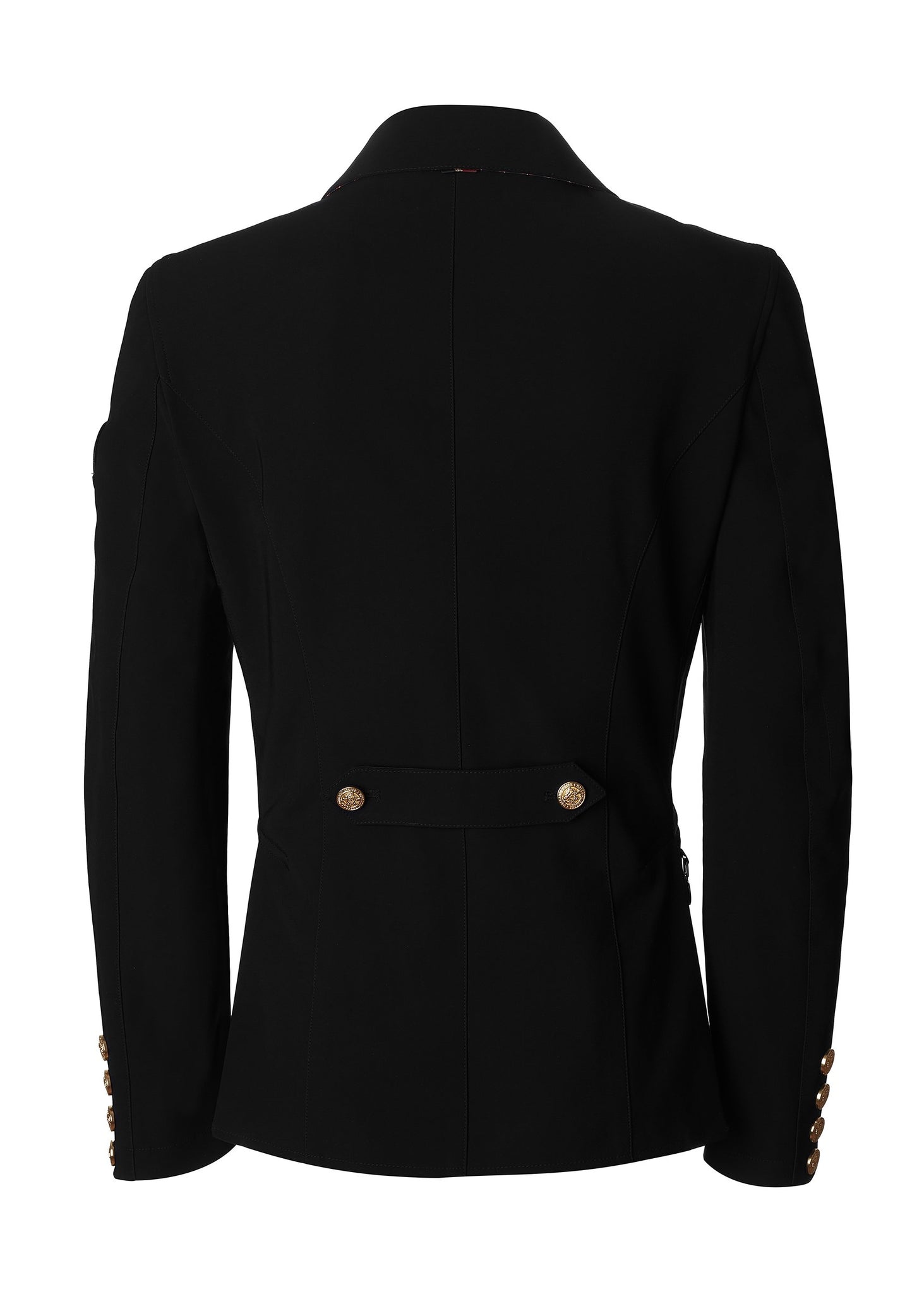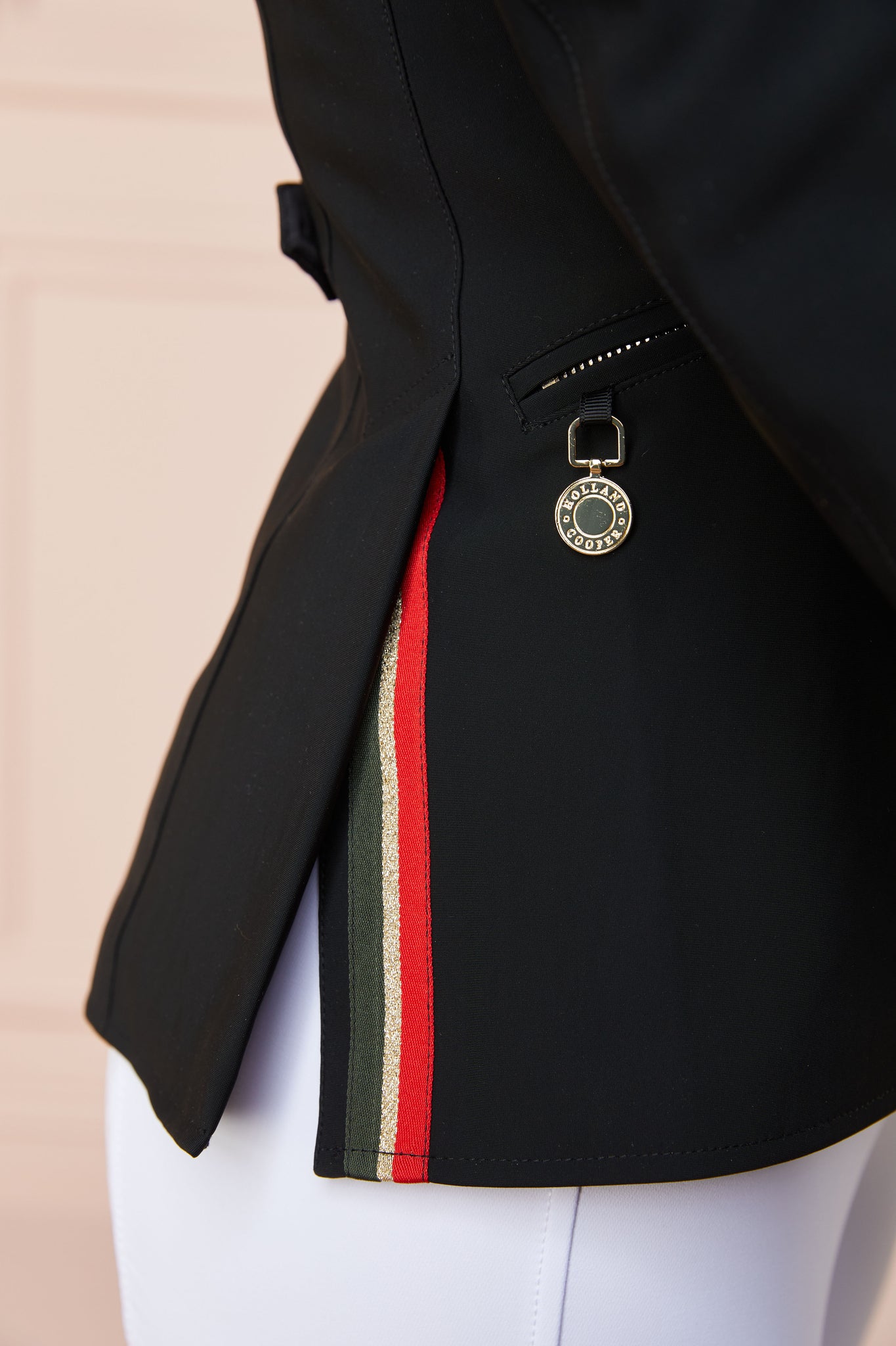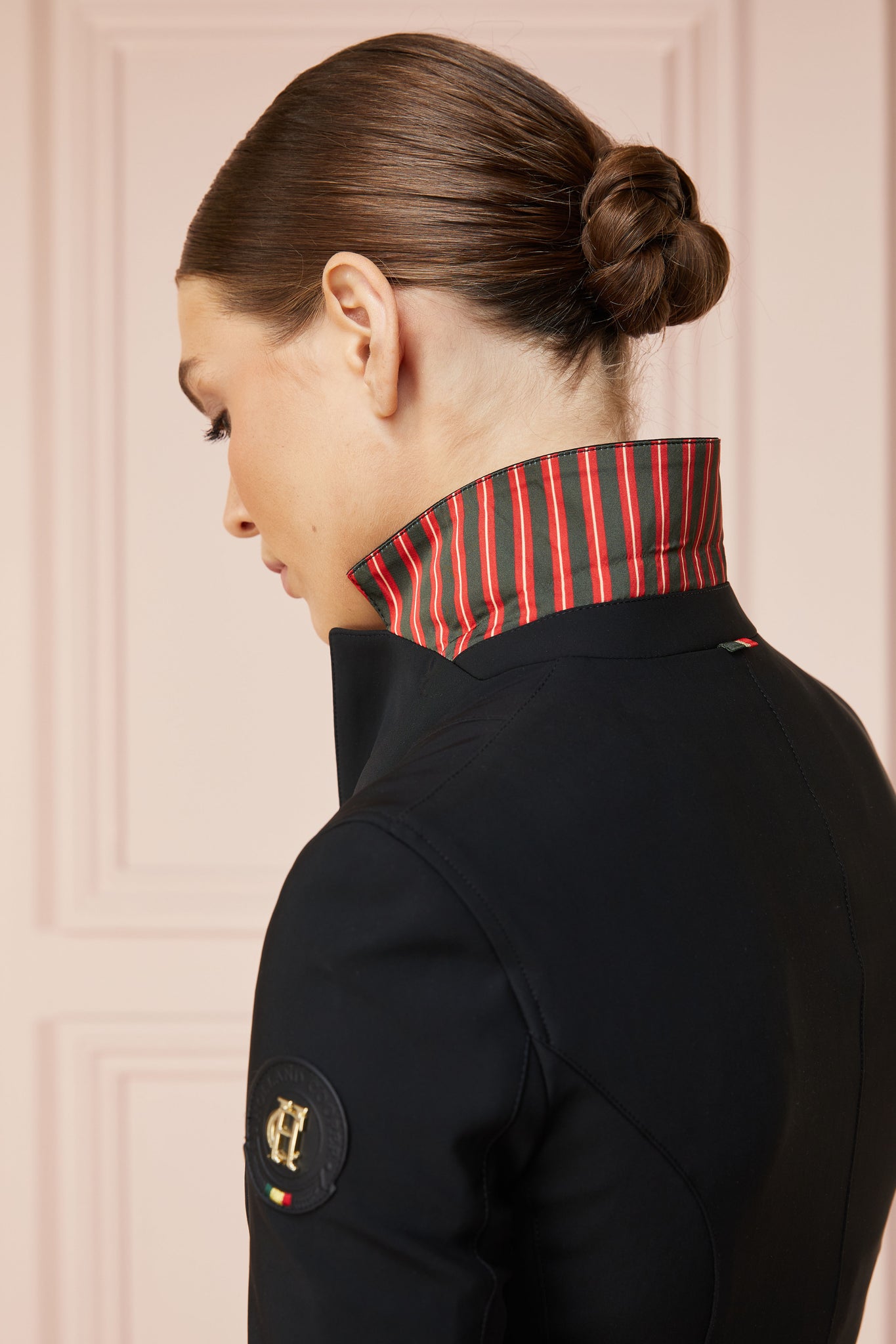 Meticulously tailored for a flattering slim fit, this competition jacket is a must have for all competition riders. Constructed with a breathable mesh lining and shower-proof outer shell, we’ve ensured extra stretch for comfort whilst in the saddle. Detailed with zip closure and faux button fastening to keep you secure whilst riding, finished with HC iconic gold hardware. This jacket adheres to GB Competition Regulations.