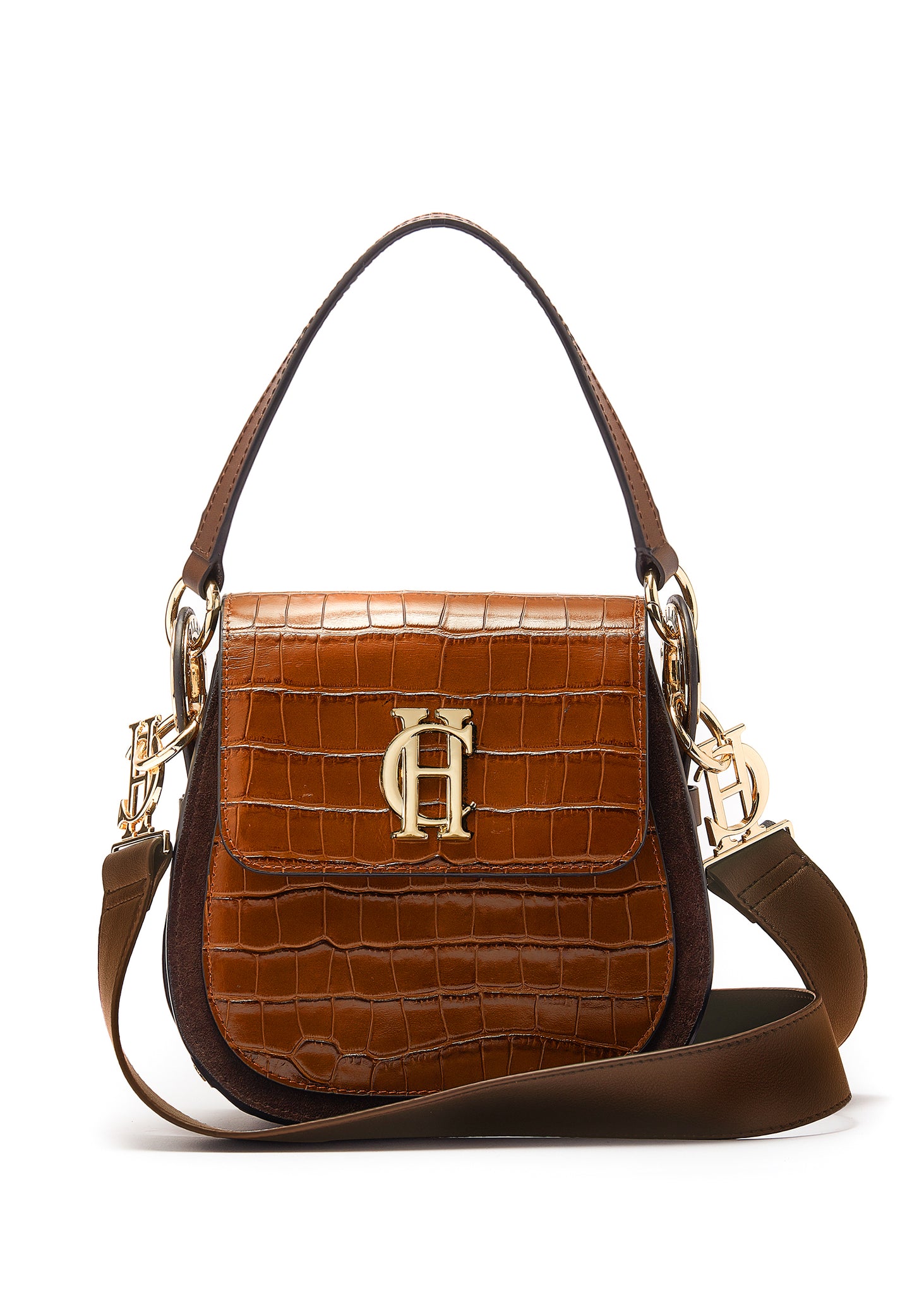 The Chelsea Saddle Bag has a classic curved structure made from premium genuine leather that creates an elegant accessory, perfect for any occasion. Detailed with classic HC gold hardware, practical handle and shoulder strap, this bag fits beautifully with Holland Cooper’s heritage branding. The trim and inside lining are made from tonal suede to complete this stylish statement.