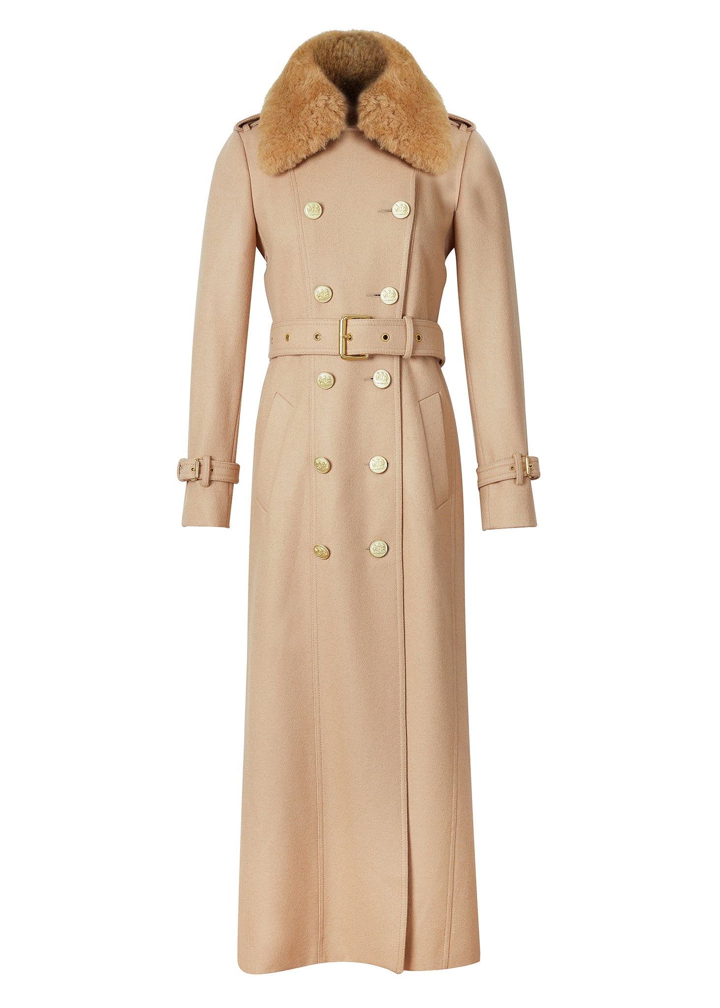 A luxurious adaptation of our signature wool trench coat, this coat comes complete with a sophisticated detachable collar made from the finest Merino sheared lambswool. Beautifully tailored to create a sharp silhouette that can be further defined with the waist belt. Hand cut and made entirely in England using wools woven in the UK.