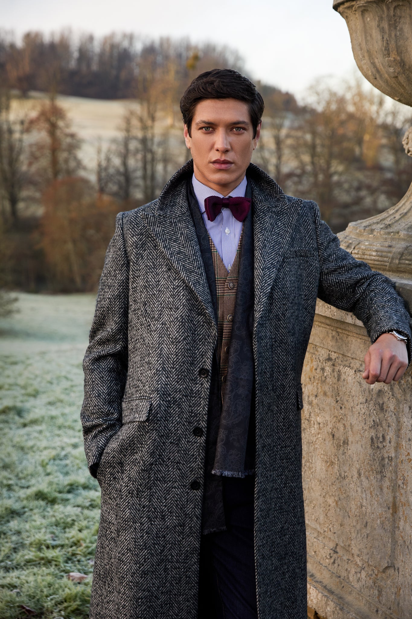 A refined take on classic tailoring, the Fairford Coat is crafted from pure wool herringbone, offering both warmth and timeless sophistication. The sleek, calf-length silhouette is elevated by peak lapels and a black leather collar stand, while a concealed button fastening ensures a clean, polished finish. Thoughtfully designed with a vented back for ease of movement, articulated sleeve openings with branded alloy buttons, and a fully lined interior with contrast leather-trimmed pockets, this coat is the perfect blend of heritage craftsmanship and modern elegance.