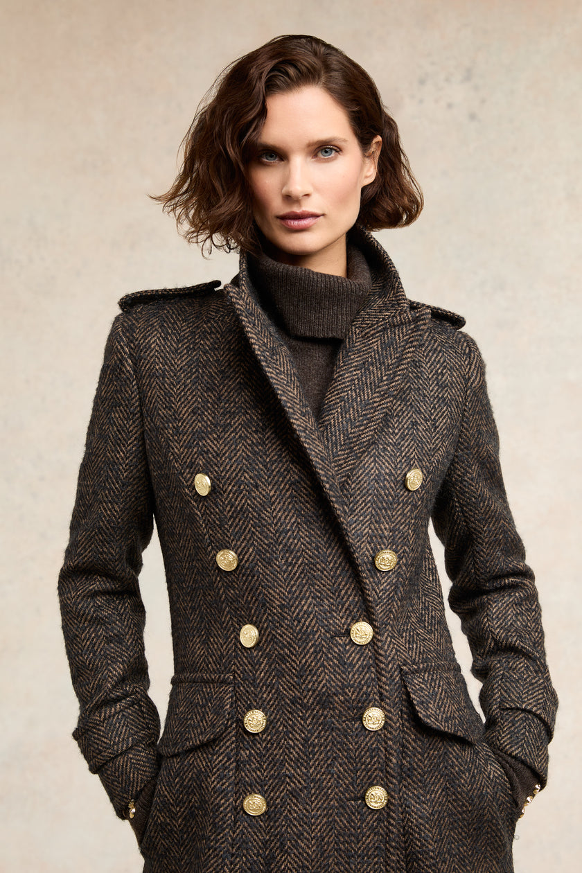 We have taken this timeless classic, known as ’the warm' and re-imagined it for today. Cut in beautiful soft wool, woven in British Mills, we have curated a double breasted variation of this sophisticated style. Retaining its longline, slightly oversized silhouette & sharp lapels, finished with Classic Military inspired shoulder and cuff Epaulette details, and of course, our signature crested metal hardware.