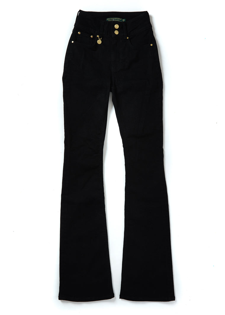 Available in Petite, Regular & Tall. Made with super soft, stretch denim and featuring a high-rise, fitted at the leg, they flick out into an elegant flare that adds an extra something to every-day looks. Detailed with our signature crested hard-wear and the HC coin charm to the belt loop.