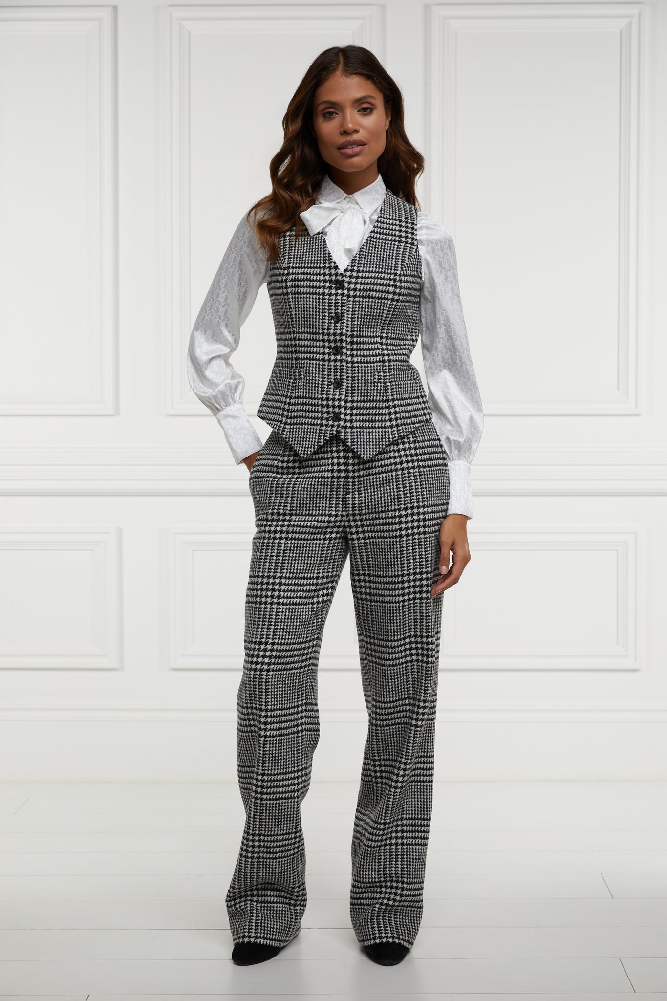 Both classic and refined, this waistcoat offers a slim tailored fit with a skimming v-neckline and elegantly shaped hem. A classic wardrobe staple with traditional suiting details, neat welted pockets, satin lining and a darted front, the back adjuster allows for a personalised fit. Subtly detailed with HC horn buttons.