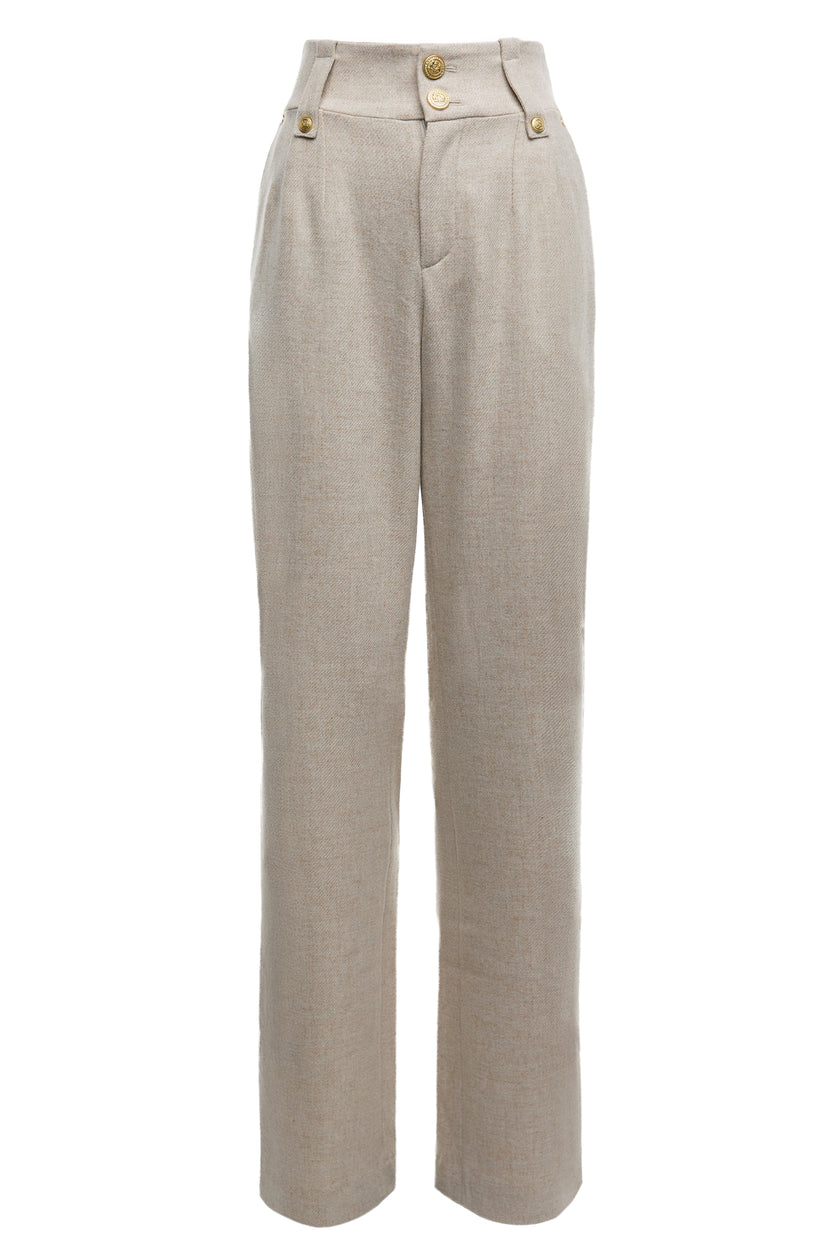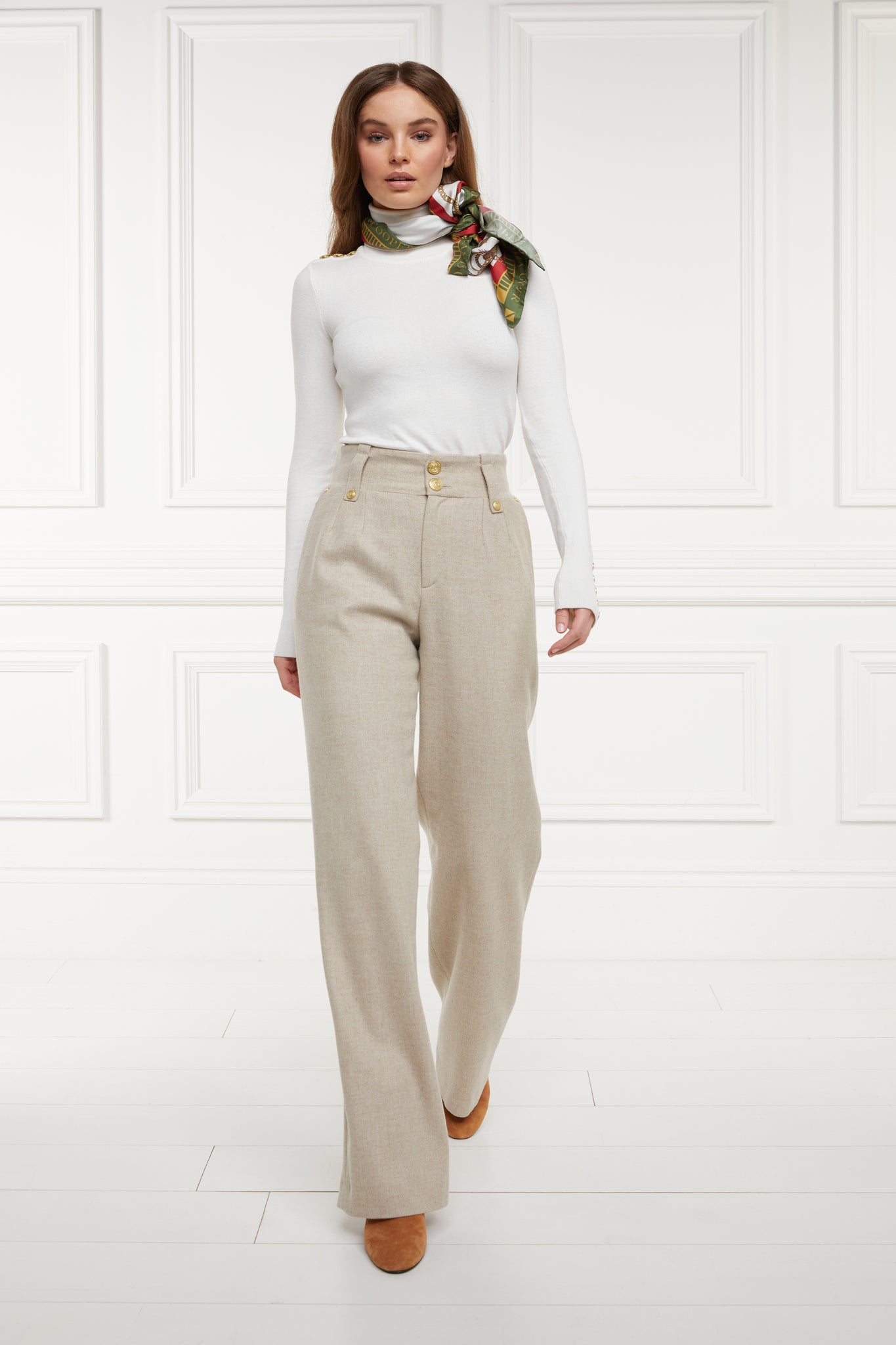 Simple and refined, these straight-leg trousers are the perfect balance of smart and casual that effortlessly take you from day to night. Made from a luxurious wool blend that's fully lined, these trousers sit high on the waist with a wide waistband to create a flattering silhouette that suits all body shapes. Featuring two large side pockets and adorned with our iconic gold hardware for an added touch of luxury. These trousers have been hand cut and made in England using wool woven in the UK.