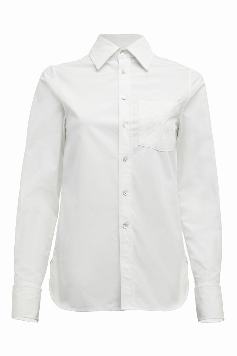 Our play on the classic white shirt, this piece has been created with all the details you would expect from a traditional piece of tailoring. Made from 100% cotton with a flattering slim fit through the body. With delicate monogram embroidery on the chest pocket and a subtle VM on the cuff, this shirt is an elevated everyday essential. Finished with a double cuff construction with elegant cufflink hardware.