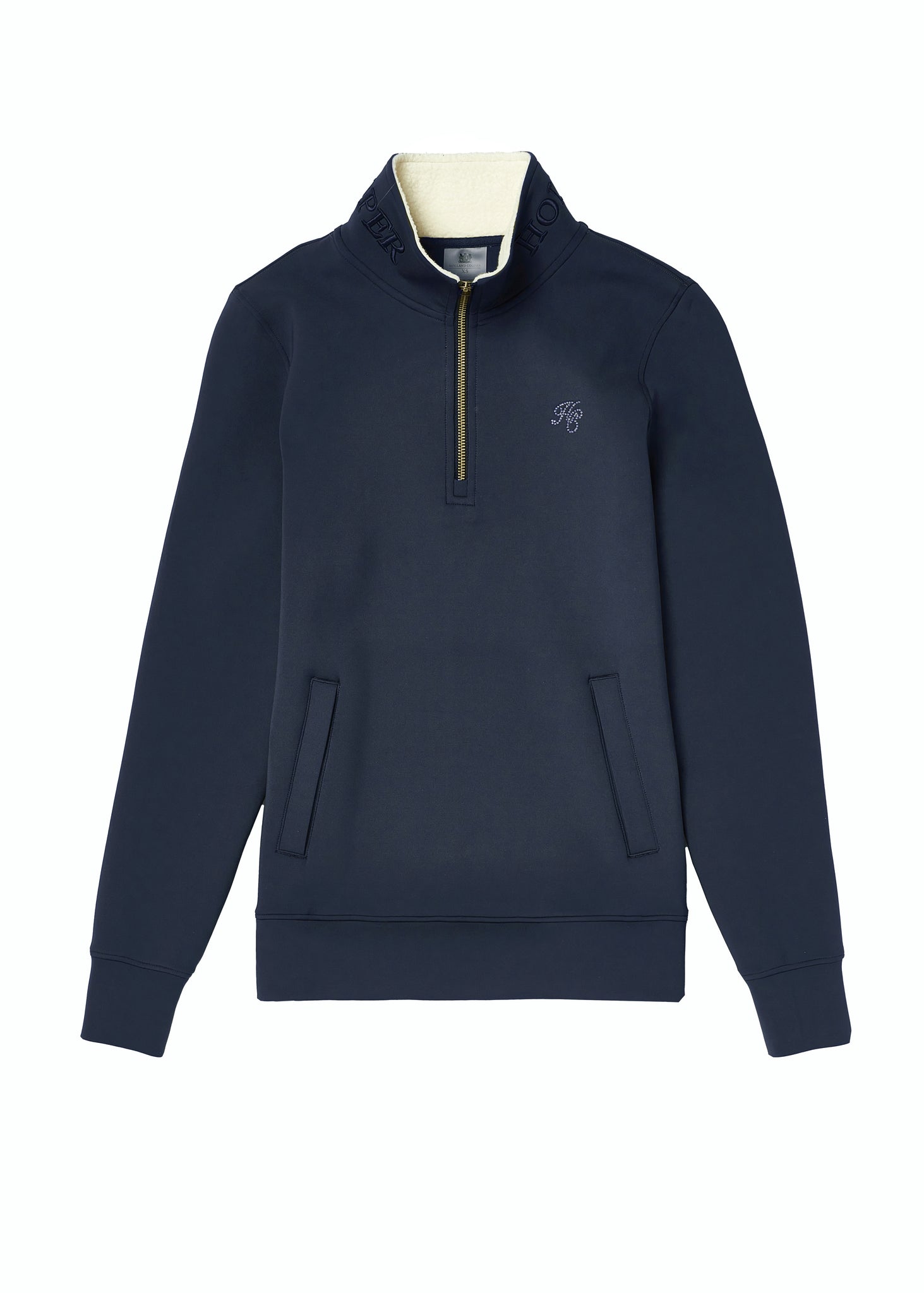 Crafted from smooth, soft-touch fabric, this piece is all about comfort. Designed for a relaxed fit with set-in sleeves, it offers ease of movement while maintaining style. The funnel neckline with sherpa on the inside provides extra warmth and coziness. Featuring a branded zip pull with a 1/4 zip opening, it's as practical as it is stylish. The high build embroidery with feature crystal branding on the chest adds a touch of elegance.