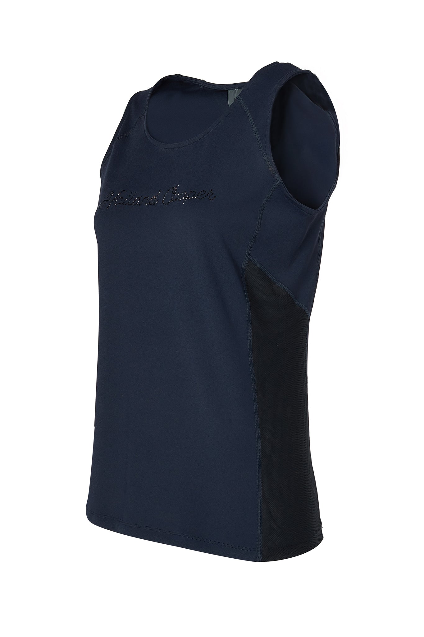 Crafted from a smooth, soft-touch fabric, this vest is meticulously designed for a relaxed fit, ensuring both ease and style. The side panels ensure breathability whilst the crystal embellishments elevate this riding essential. With a sleeveless silhouette and machine-washable convenience, this base layer blends both practicality and sophistication.