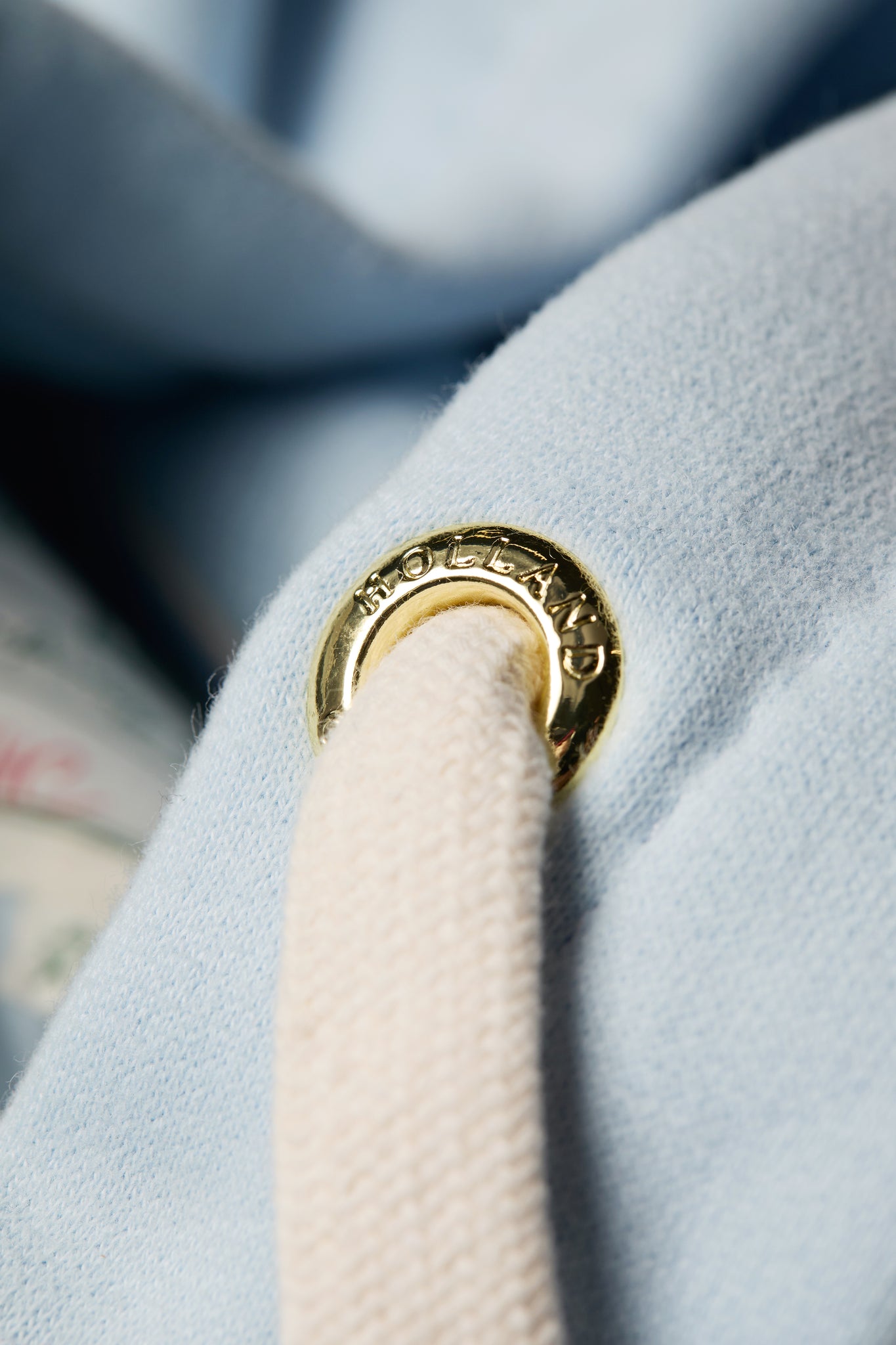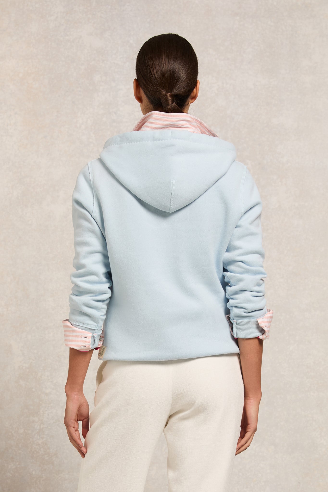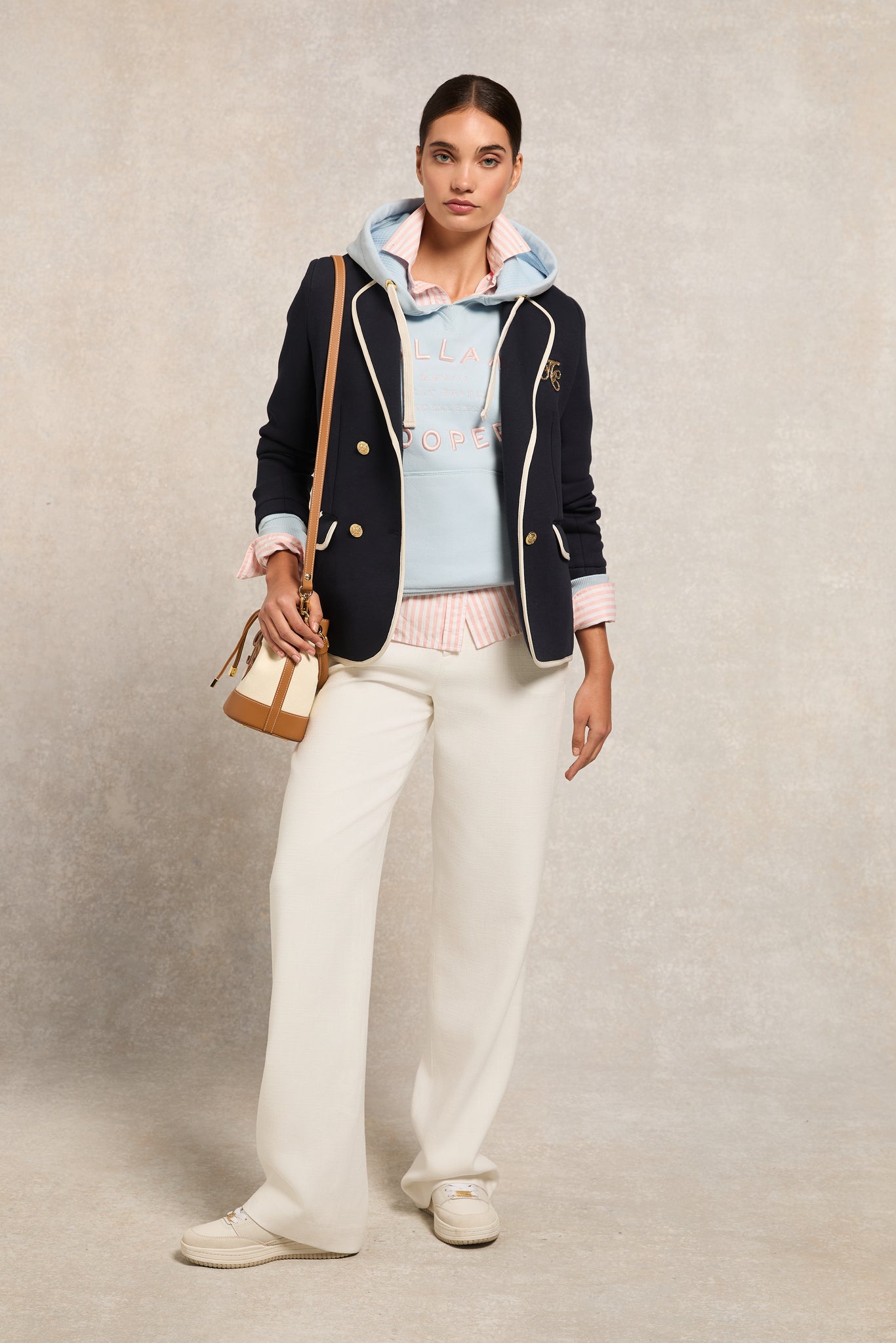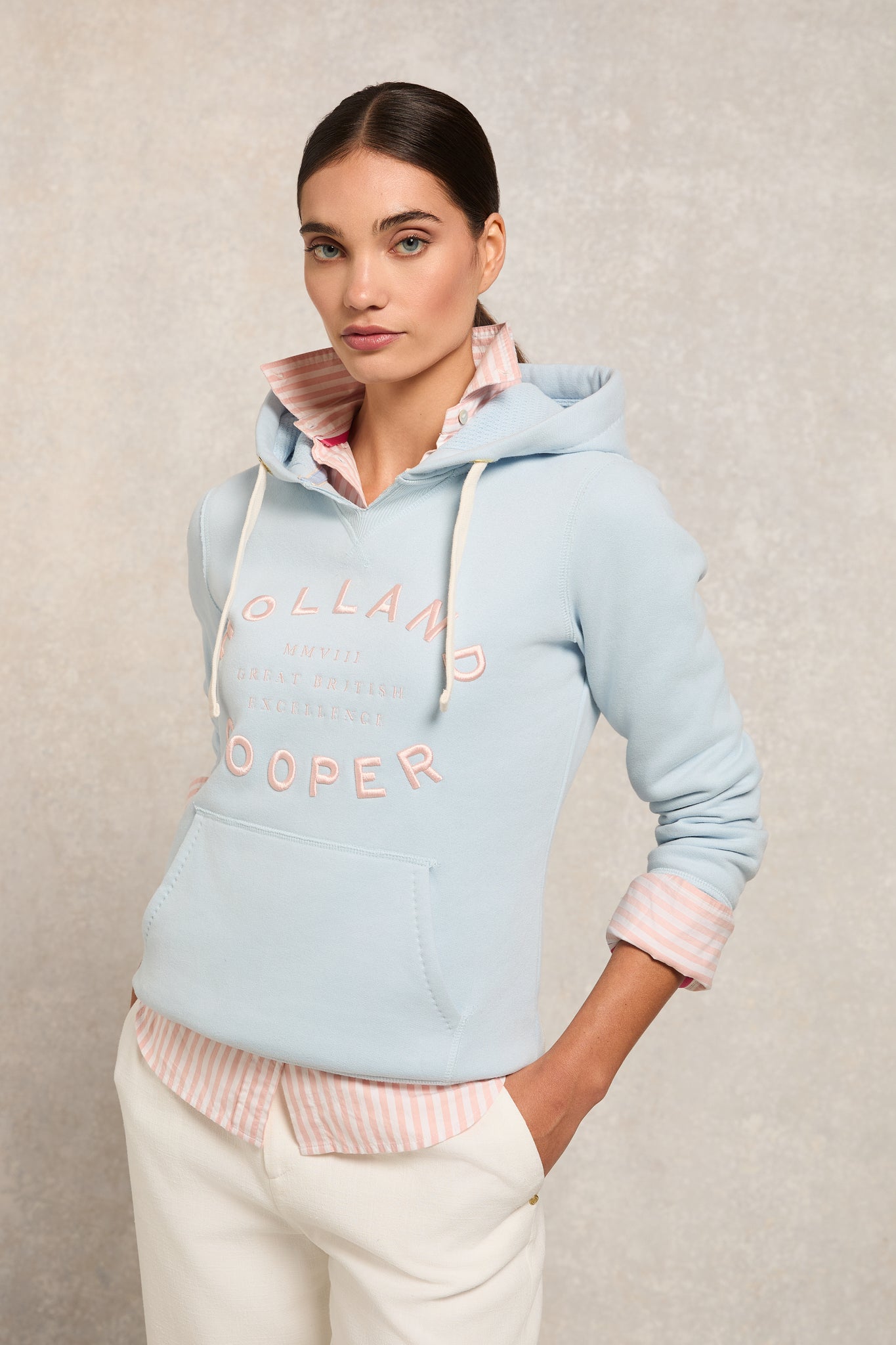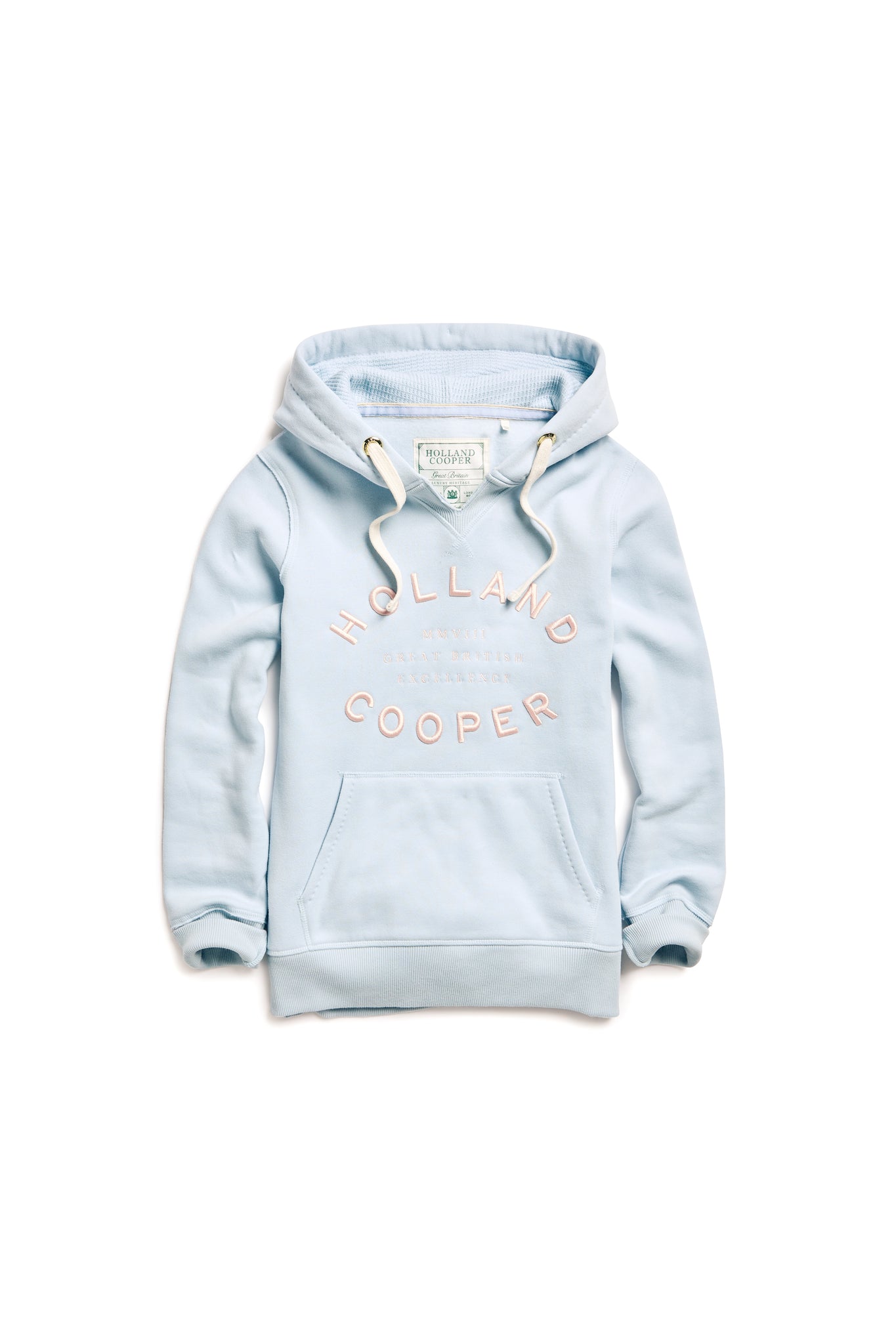 Made from a soft cotton mix jersey, this hoodie has been cut for a relaxed fit with a handy kangaroo pocket and drawstring hood. With a ribbed hem and cuffs with high build embroidery on the chest. Elevated with our iconic gold hardware.