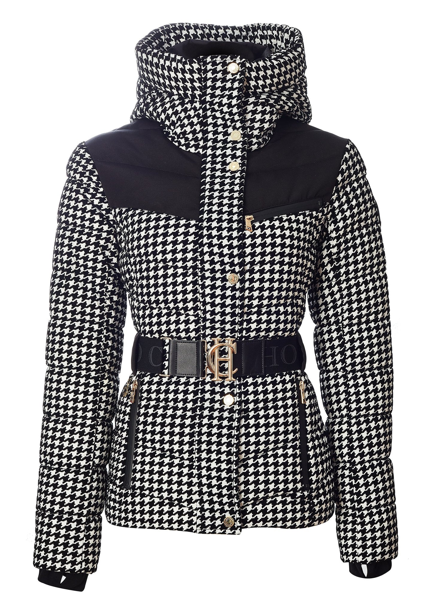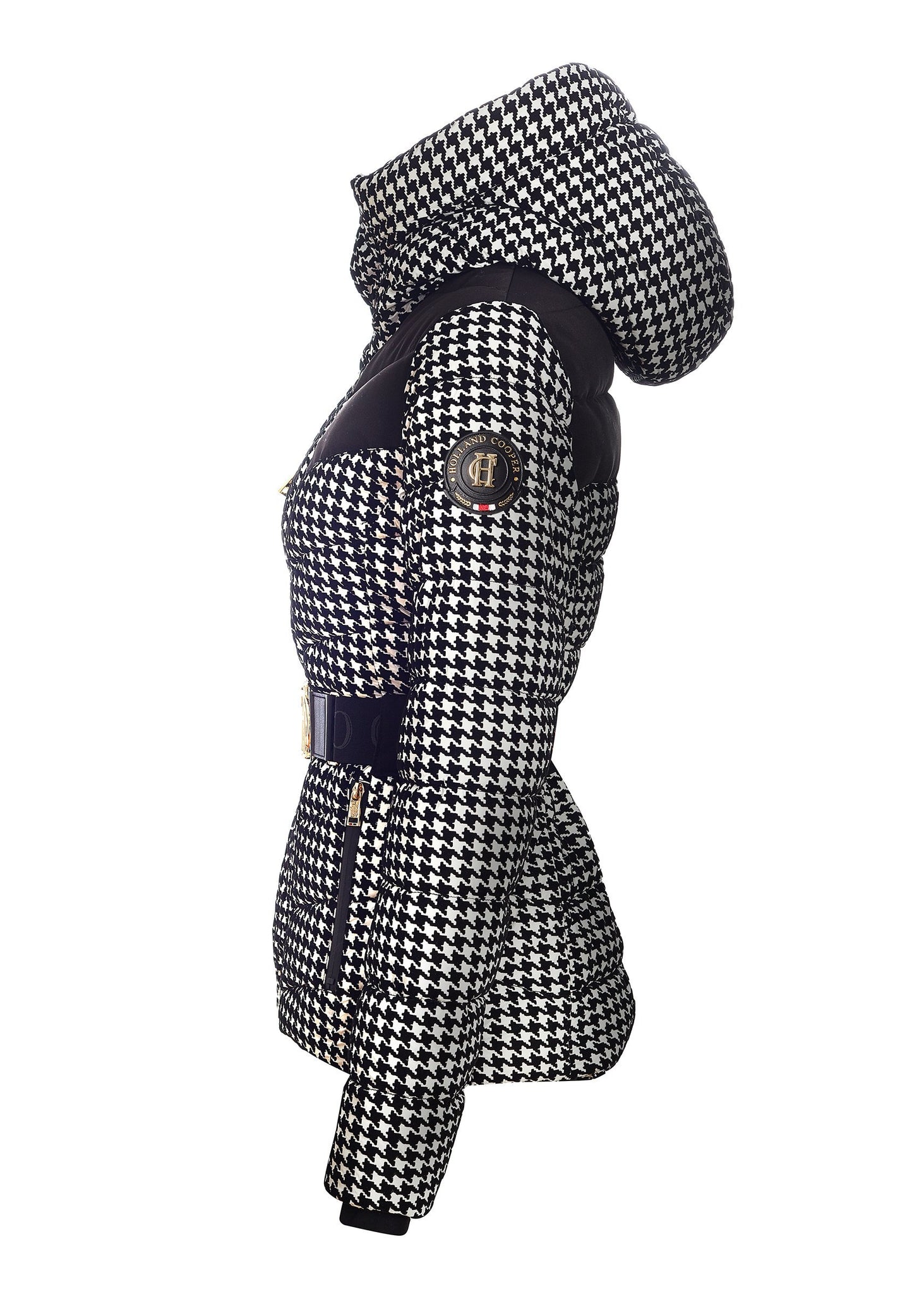 - Figure-flattering hooded padded jacket with integrated belt