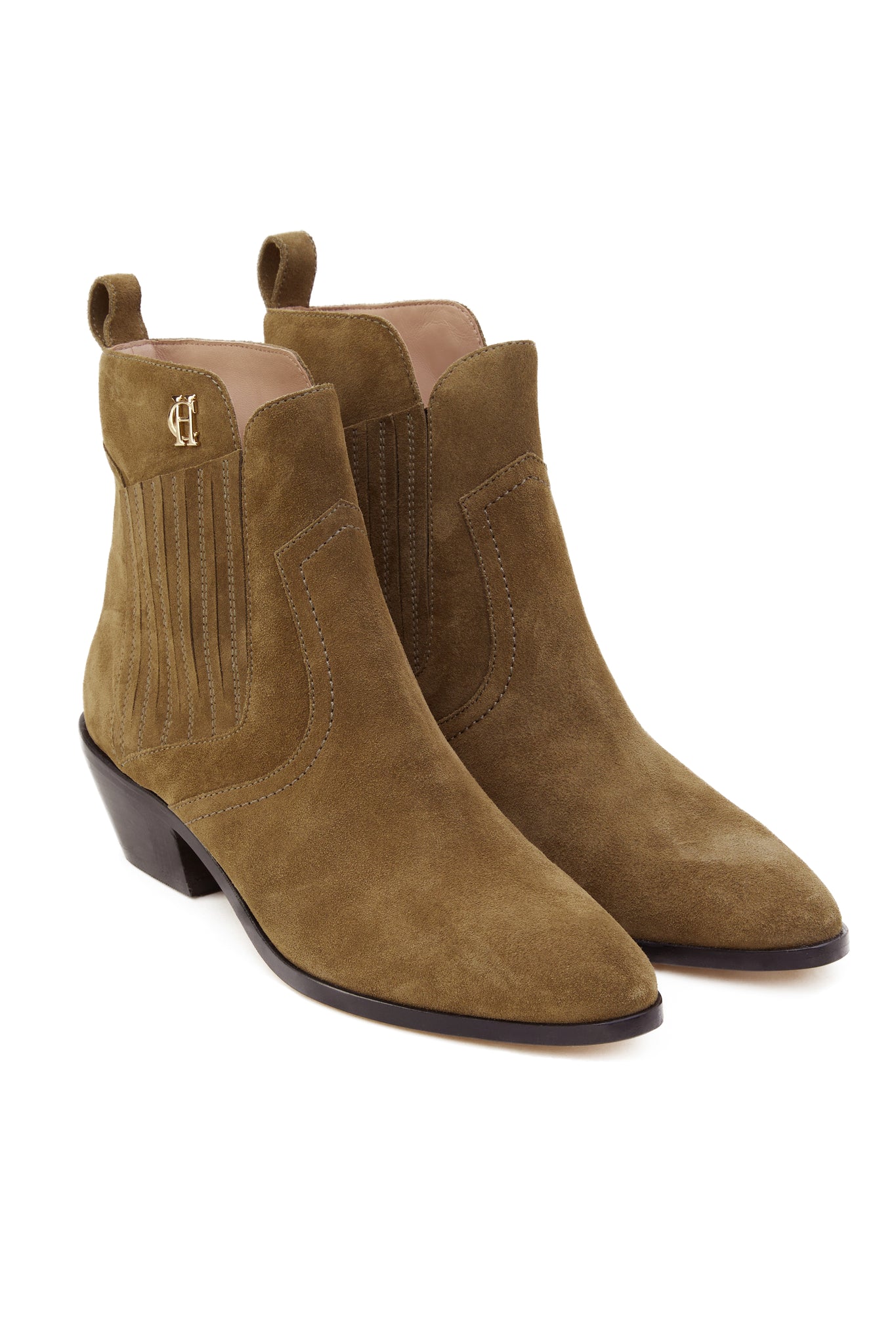 Reminiscent of classic western styles, these chelsea boots are meticulously crafted using a premium suede. Embroidered with tonal stitching and topped off with our signature gold HC branding to the front, these shoes are the perfect way to elevate any outfit. Fully lined with super soft leather and made with a luxury leather sole with a rubber front for grip.
