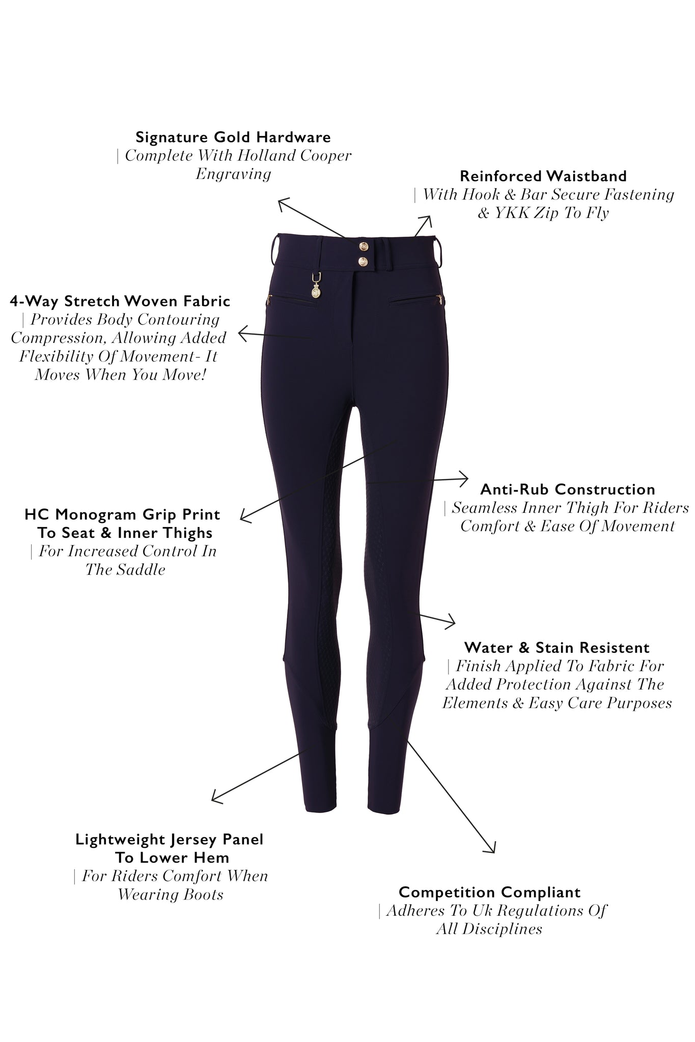 - HC monogram grip print to seat & inner thighs for increased control in the saddle