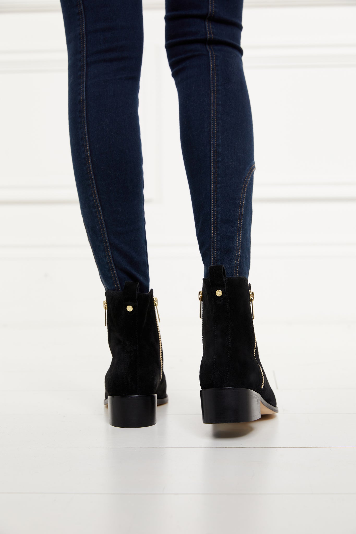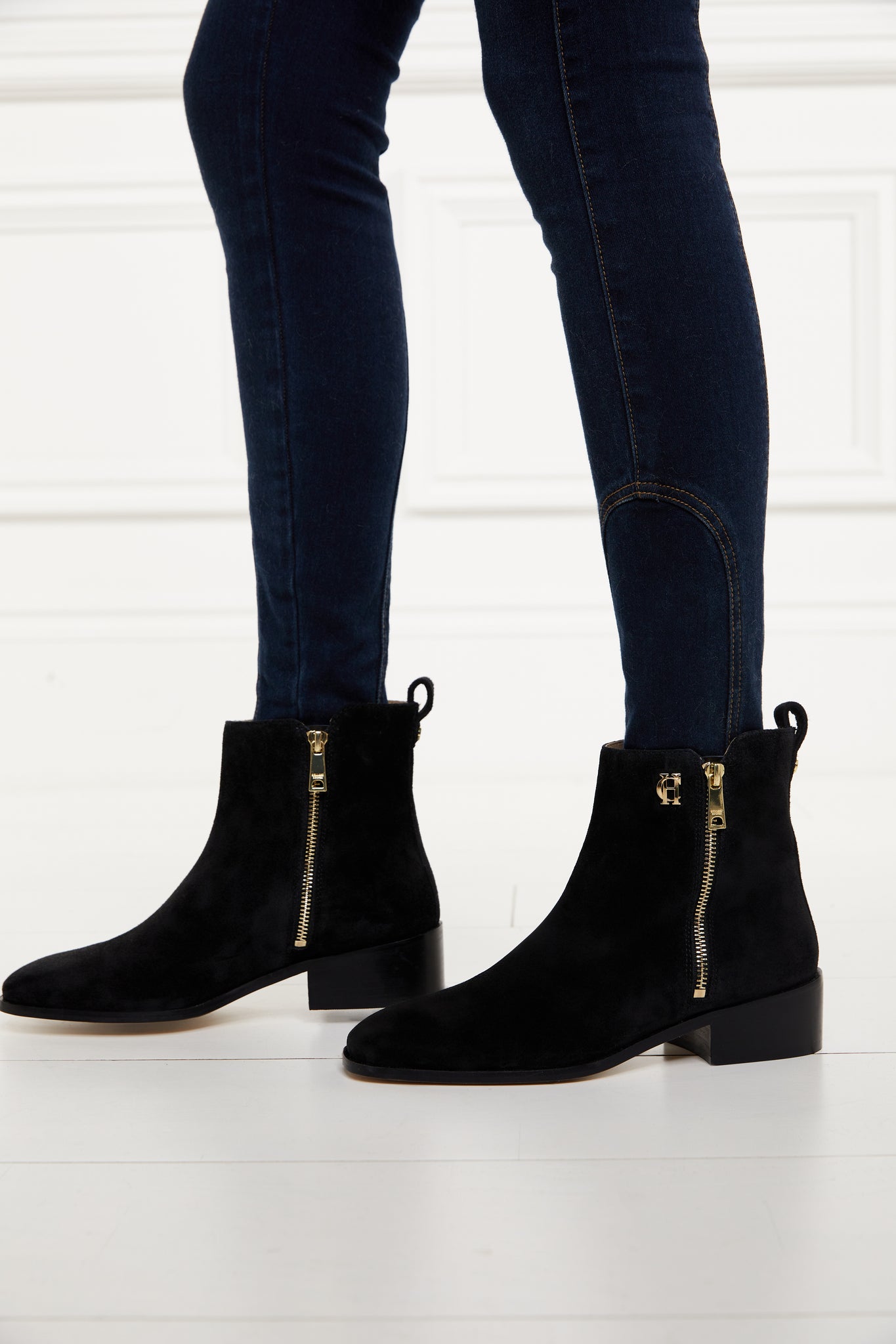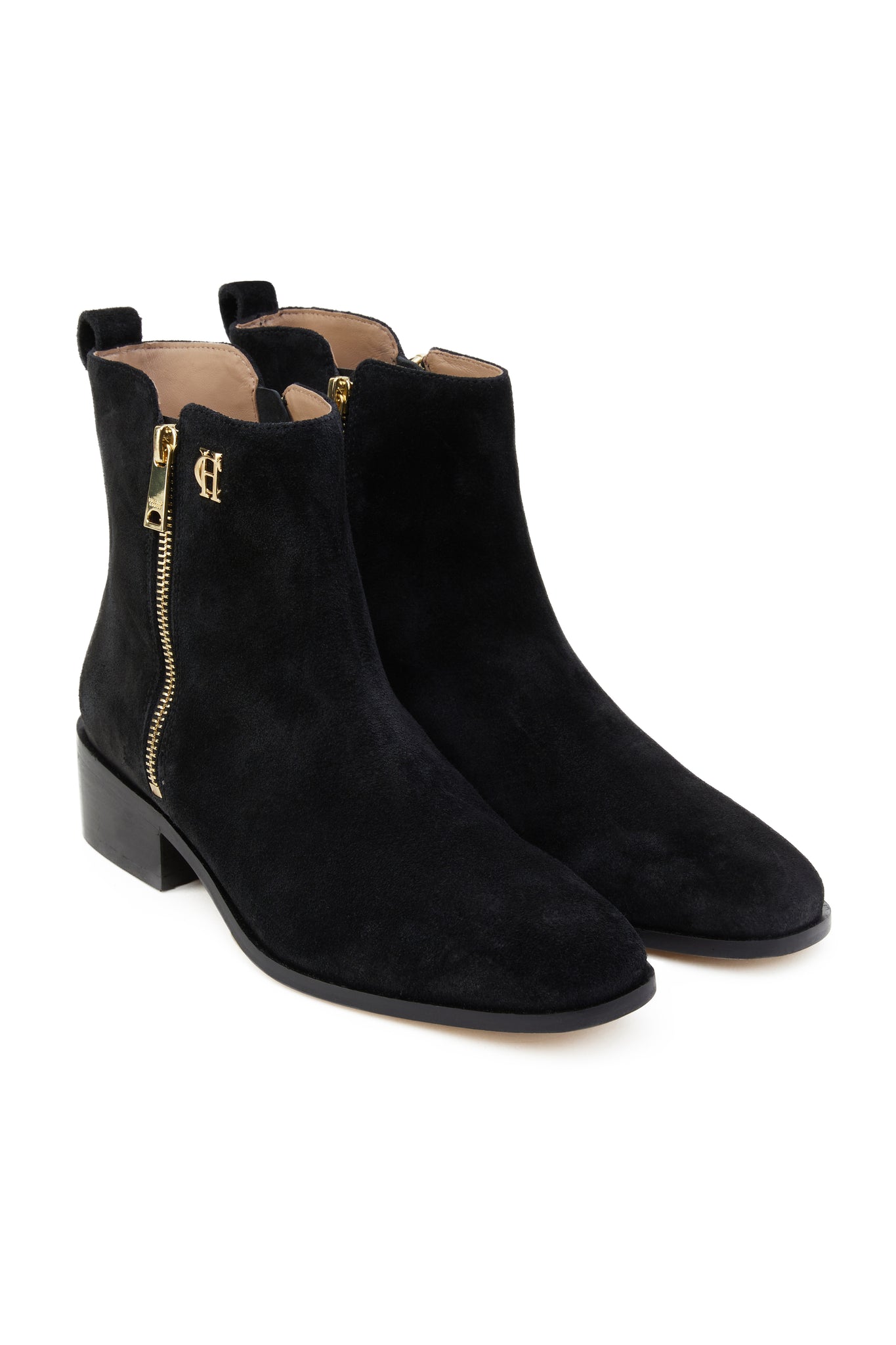 Made from premium suede & fully lined in buttery soft leather, this classic Chelsea boot will become a lasting wardrobe favourite with its sleek silhouette and branded leather pull tab for ease. Featuring our gold-branded HC zips to either side and topped off with a subtle gold HC to the top edge for added style.